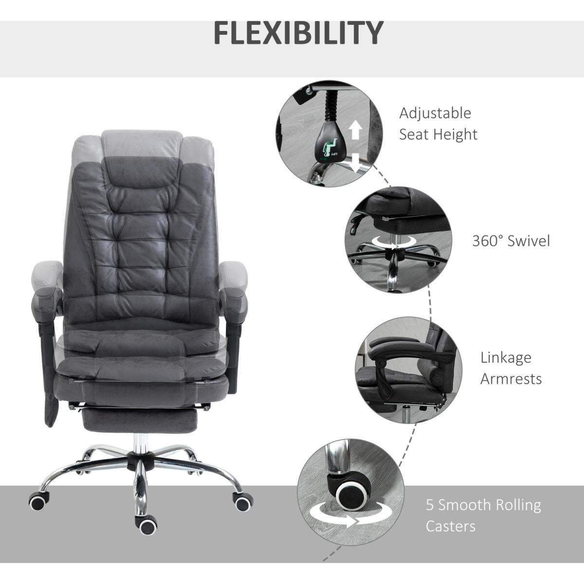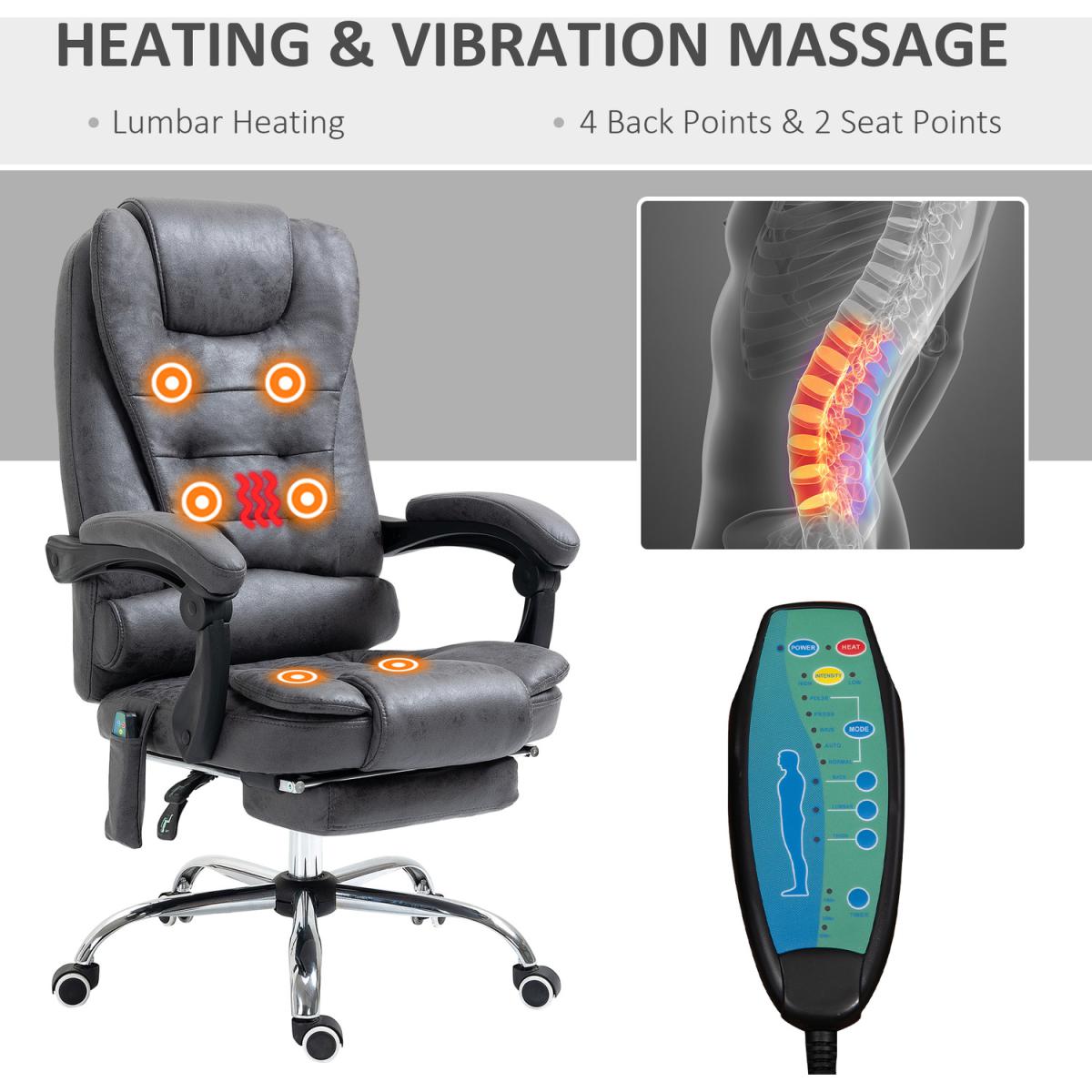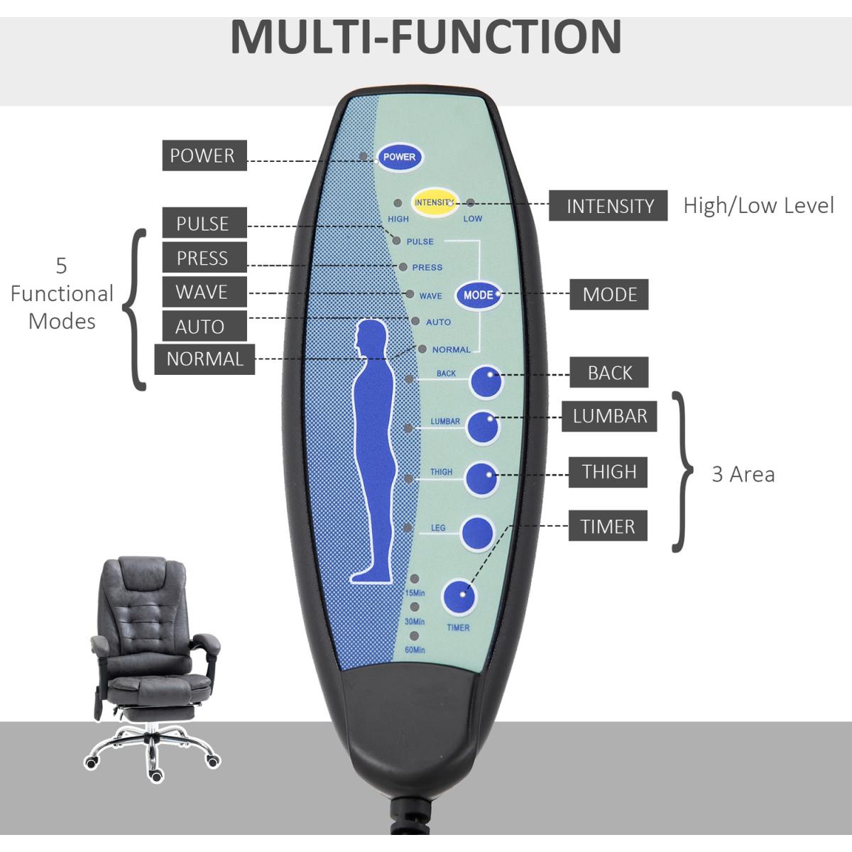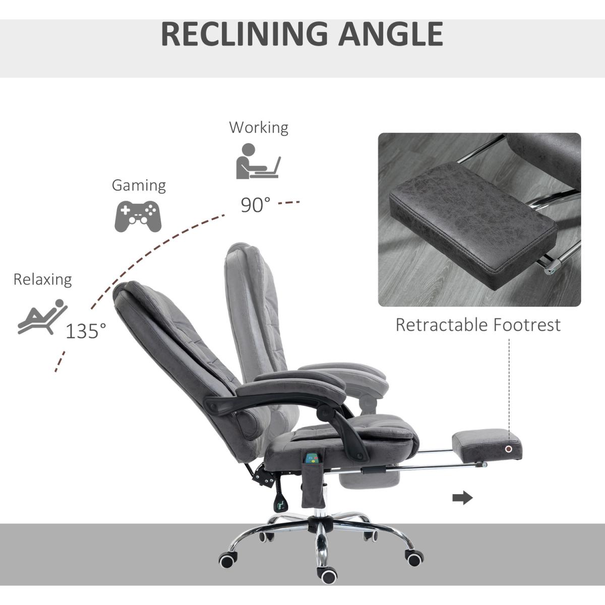 Work and relax, all in one with massage office chair from Vinsetto. Wrapped in microfibre, the upholstery is super close to the skin and easy to look after. But, most importantly, it has six heated massage points - four on the back, two on the seat: simply turn on the remote and relax. The wide seat gives lots of sitting room, with a high back and arms for plenty of support. The back also reclines between 90 degree and 135 degree, finished with a pull out footrest to elevate your lower body with ease.