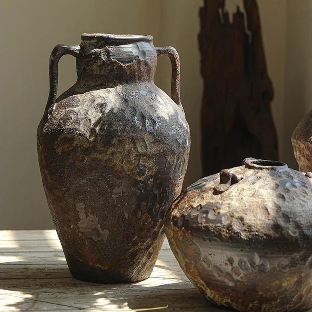 Vintage-Inspired Organic Ceramic Vase with Textured Rough Finish - Grey