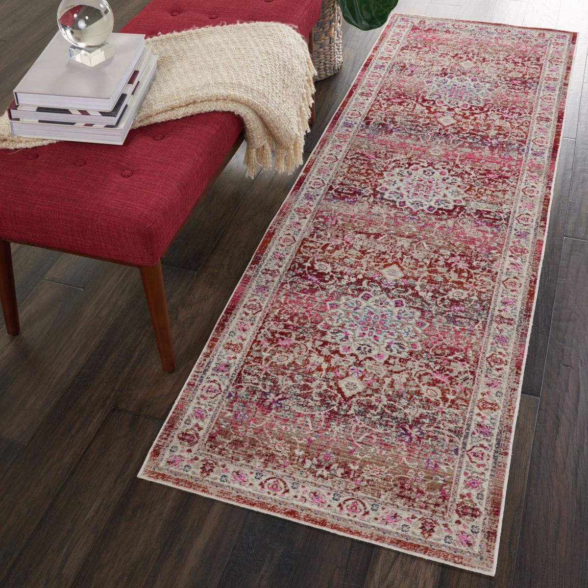 The deeply distressed ultra-low-cut pile (5mm) features a classic multi-coloured palette for the look and feel of a Persian heirloom rug. Our rugs are stored rolled up in their plastic wrapping to ensure they stay in brand new condition. This means that they may not lay completely flat when you first unroll it. The more you use and walk over the rug the quicker it will flatten out. This can take anything from a few days to a few weeks depending on the type of rug you have purchased.