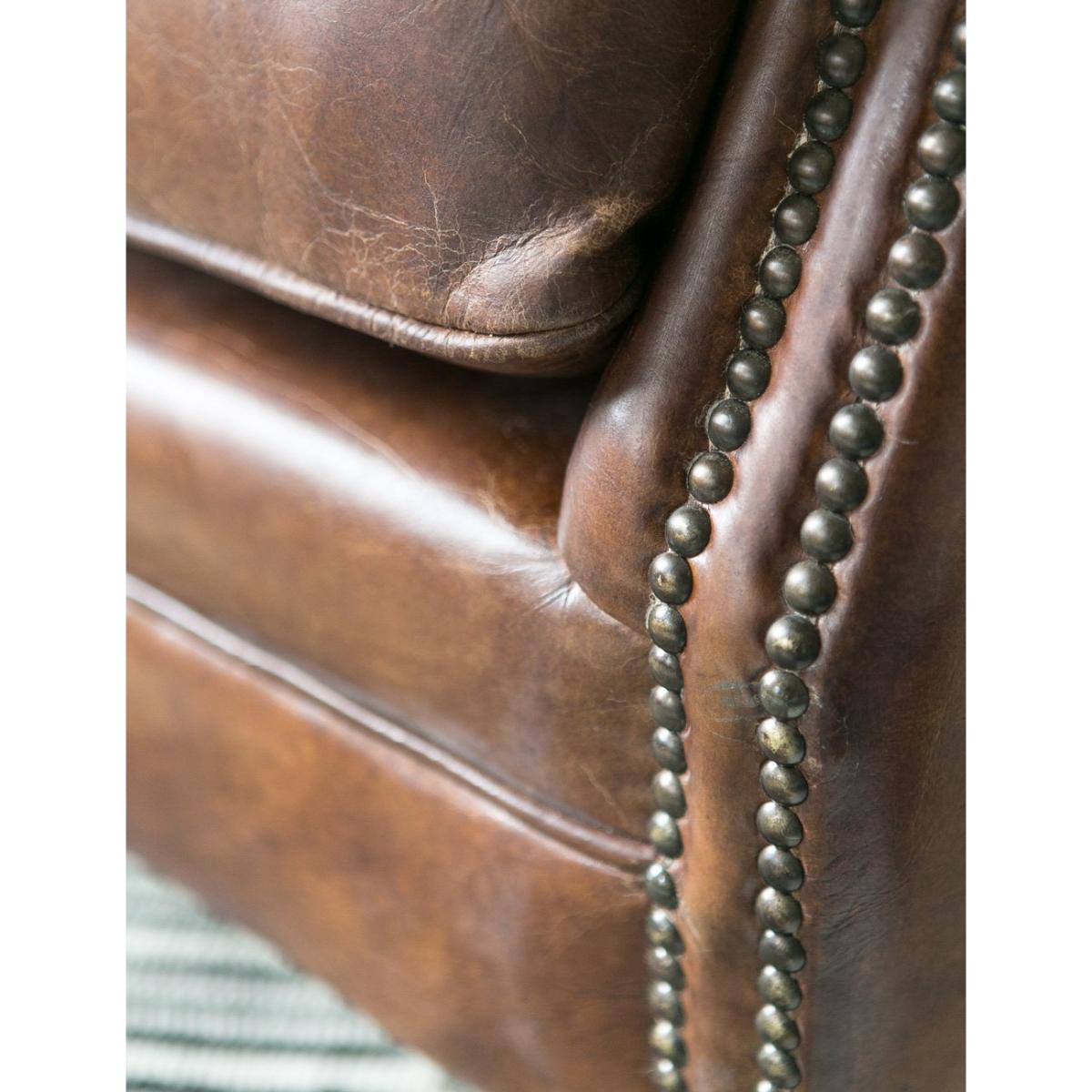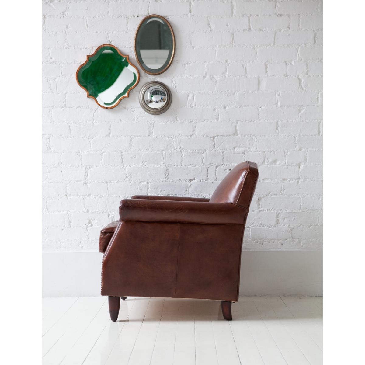 If you love vintage leather but only have a small space to fill then check out the stunning little brother of our Vintage Leather Furniture Collection: the Brooklyn armchair. This snug and cosy armchair looks great on its own or as part of a complete vintage leather suite. This chair is manufactured with a top quality hardwood frame, eight-way hand tied springs and soft foam-filled cushions to give it a lived-in look. The leather gets better and better as it ages, creating a heirloom piece of furniture. The hardiness of the leather makes this the perfect chair to use in high traffic areas of your home, or places where you can expect spills such as in the hallway or the kitchen. It's also the perfect chair for positioning beside the fireplace in a living room for cosy evenings. A matching Brooklyn sofa is also available.
