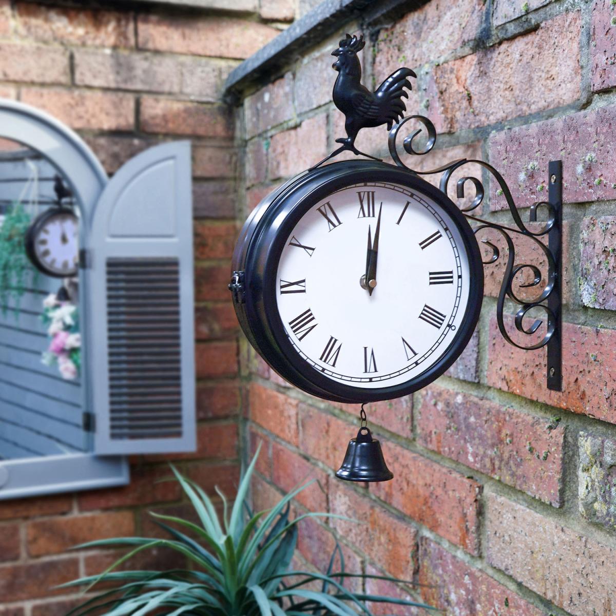 Vintage Outdoor Double Sided Station Clock 20cm with Metal Cockerel - Black