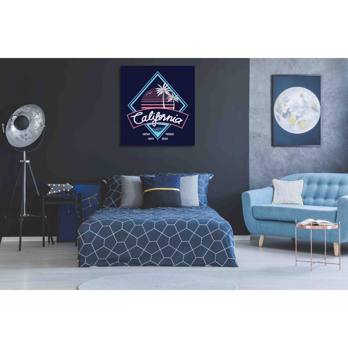 'Vintage Retro California Slogan' Graphic Art on Canvas - Blue / 77cm