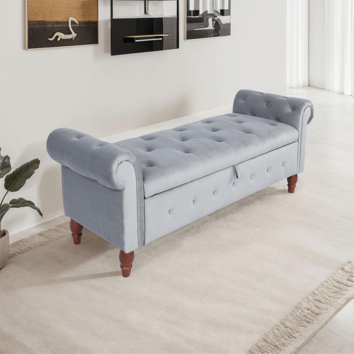 This vintage storage bench is made of premium velvet fabric and filled with high-density foam, highly intensive, long-wearing, and bouncy to sit on. The storage bench is supported by solid wood legs, which are more durable to use, boasting great weight capacity. In addition, the protective footpads are provided on the bottom.