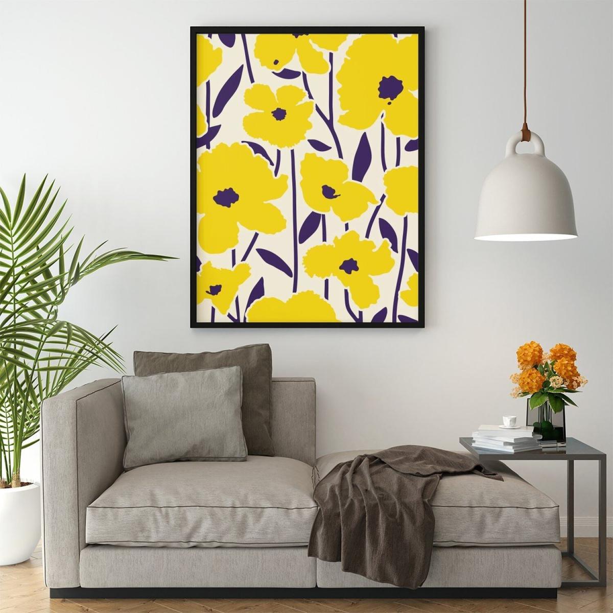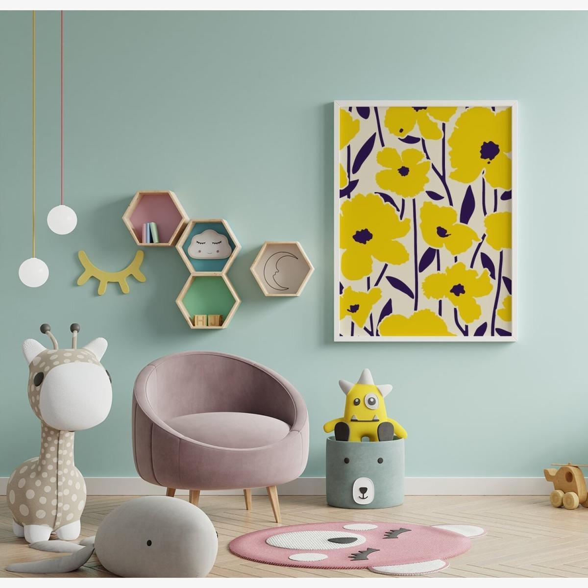This vintage tropical flowers art print in yellow is a fantastic way to inject colour and cheer into a variety of interiors. I love how its bold, sunny hues work especially well in living rooms or bedrooms that aim for a lively, tropical vibe, but it can also brighten up more neutral or muted spaces. It pairs well with light, pastel tones, as seen in the playful nursery setup, or against darker, contrasting backgrounds for a more striking effect. Practical styling tips include mounting it at eye level for maximum impact, pairing it with simple, complementary accessories, and using it as a focal point above a sofa or bed. It's a versatile piece that adds personality without overwhelming a space.