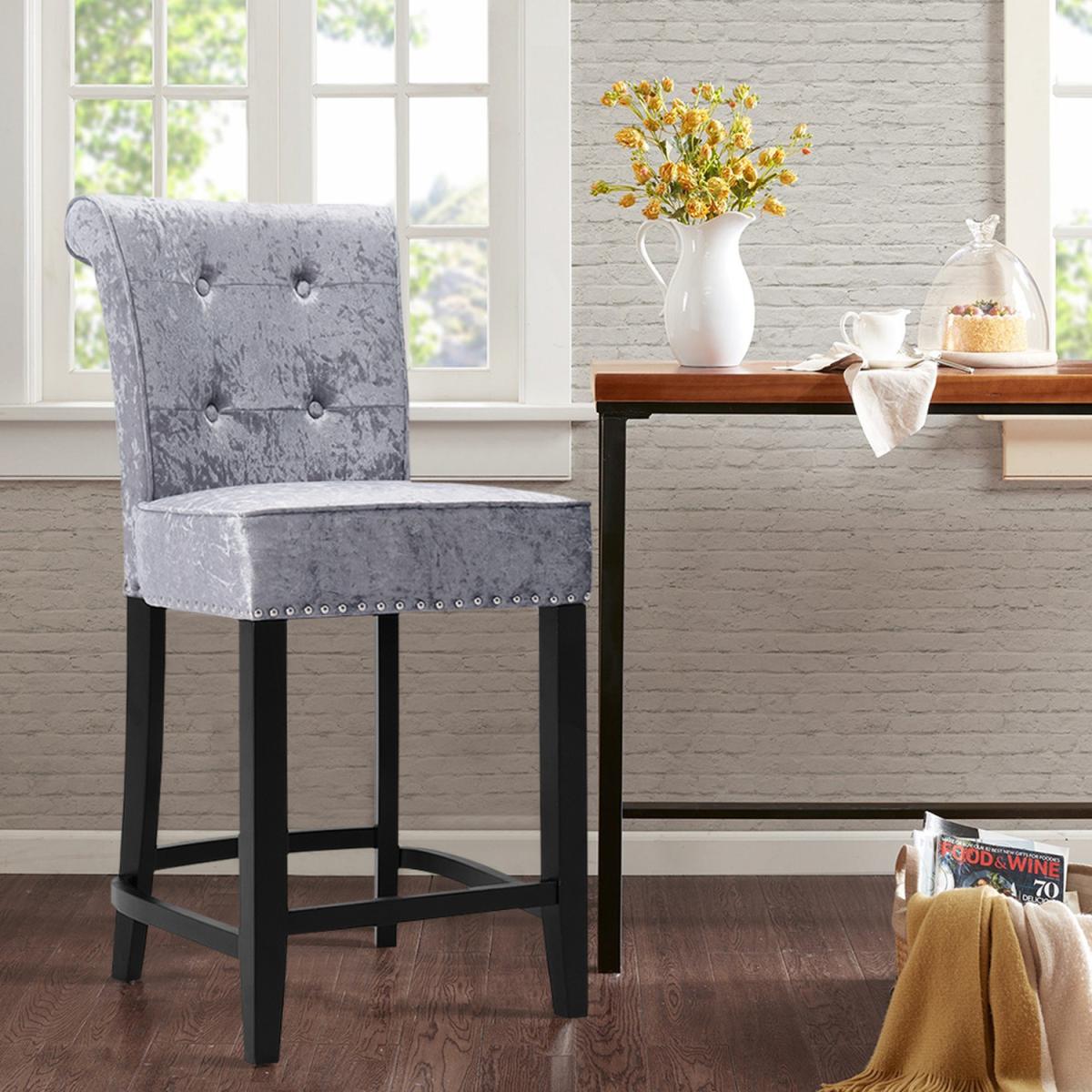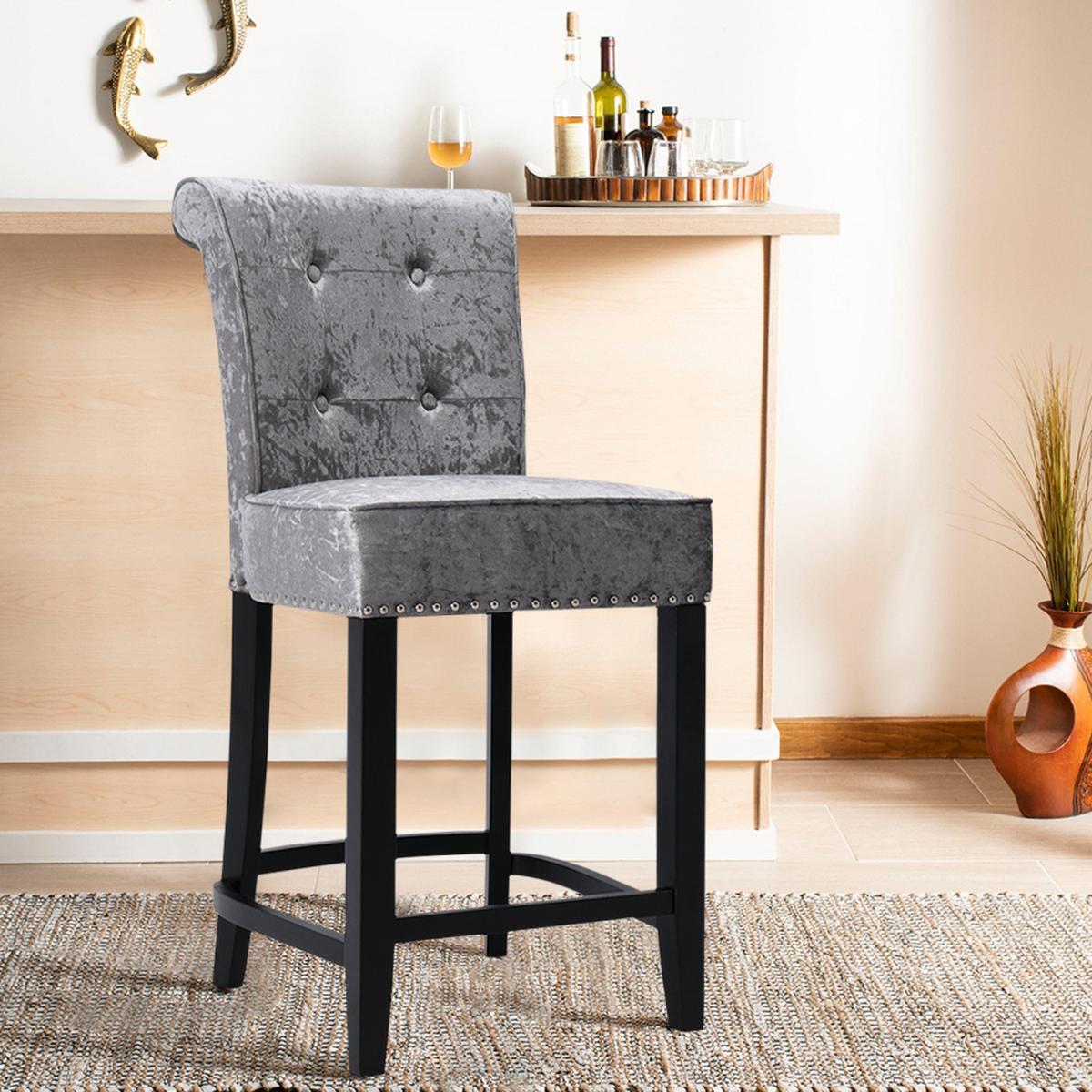The chair comes in a velvet style fabric, and it stands on wooden legs, healthy and skin-friendly, thick and durable. The padding is a high-density, high-resilience sponge that is not easily deformed after repeated testing, which has good toughness and provides a comfortable sitting feel. The stunning chair is adorned with nailhead trim and features a chic chrome ring on the back. The timeless tufting completes the look. The curved back design is not only elegant, but also can well fits to your spine when using. Ideal as dining chairs, but one could even be used as an occasional chair in a bedroom or hallway. Their plush upholstery would add style to any room.
