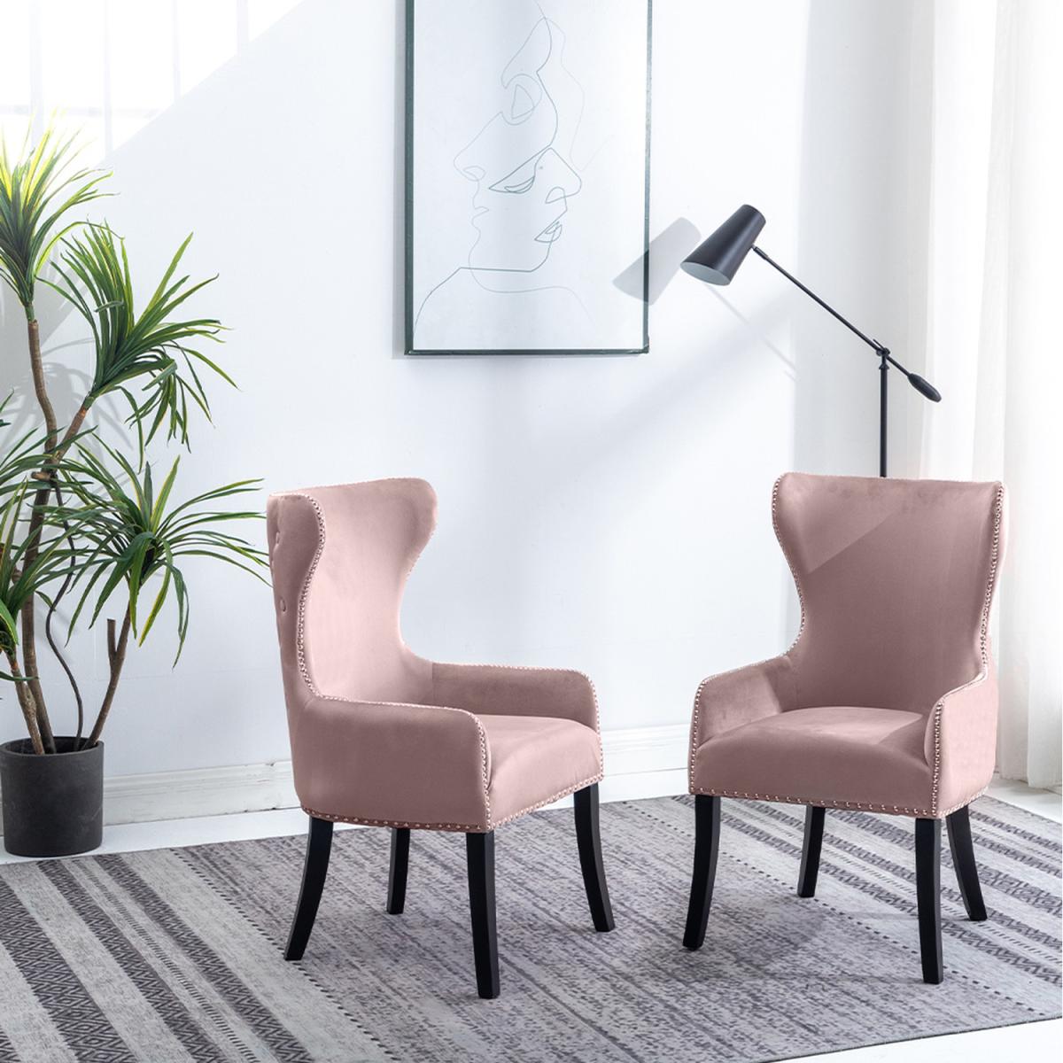 Vintage Velvet Upholstered Dining Chair - Pink
