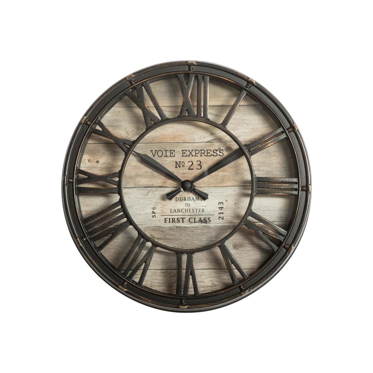 This vintage round clock is a timeless blend of modern aesthetics and functionality. Featuring roman numbers with black distressed finish that effortlessly compliments any decor, this clock not only keeps you punctual but also elevates your living space. Bring home the perfect fusion of form and function with this clock to give empty walls a brilliant focal point.