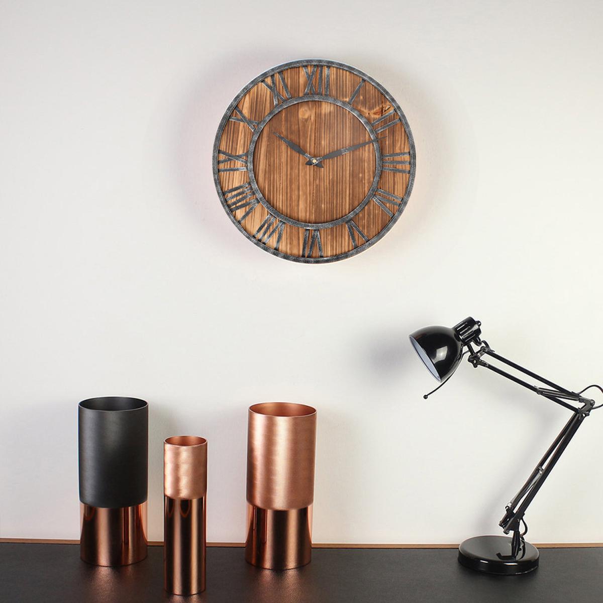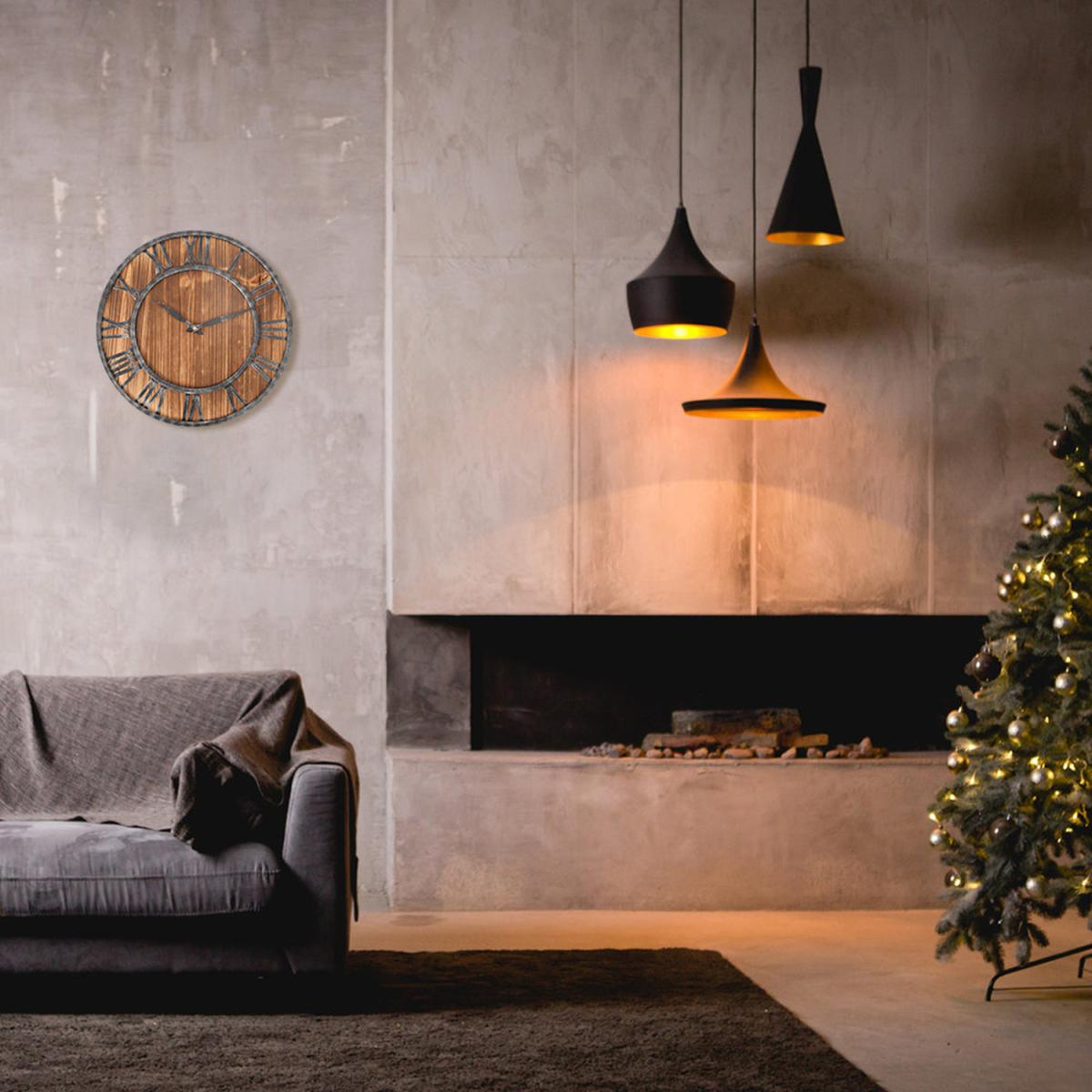 Inspired by wine barrels and old-fashioned clocks, this wall clock is perfect for any farmhouse decoration. Its wood panel details are perfectly matched with the rustic decoration and complement the industrial choice and factory style furniture. Its round outline adds a traditional touch to formal and casual aesthetics, while its natural tones can easily blend into any colour palette. Even in the living room or study at home, this wall clock with a statement is the perfect ending for your home.