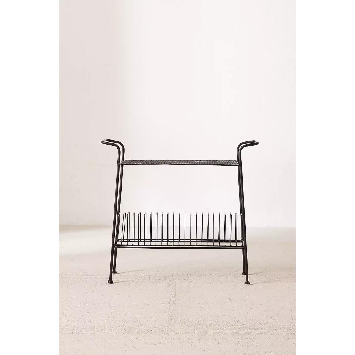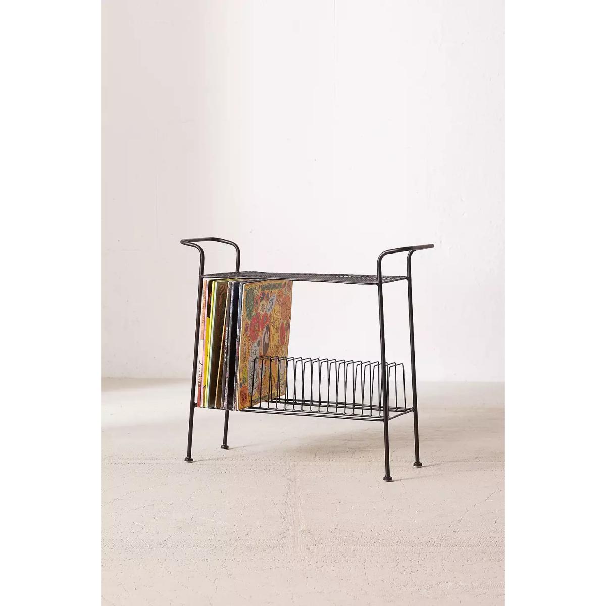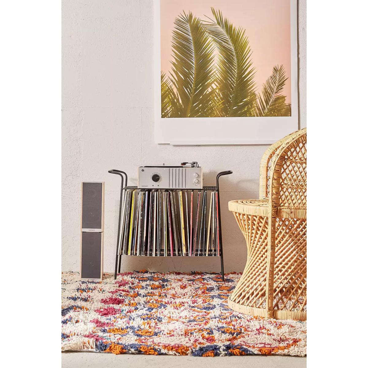 Keep your vinyl LPs nice and organised courtesy of this sleek storage system in a sweet vintage-inspired design. Features two flat shelves for display, a bottom record rack and a colour pop finish. *Online return only. This item cannot be returned in-store. * **Content + Care** \- Brass \- Wipe clean **Size** \- H: 55cm x D: 27.5cm x W: 50.8cm