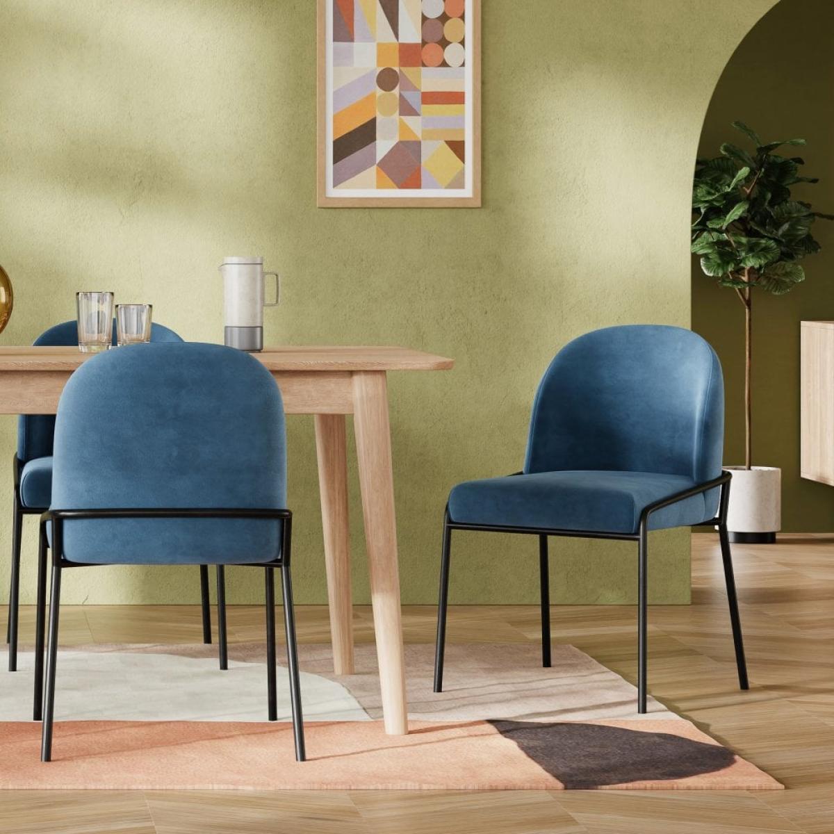 I love the Viola dining chair for its sleek, modern silhouette and rich midnight blue velvet, which adds a touch of sophistication to any dining space. It's versatile enough to work well in contemporary, minimalist interiors, as well as more eclectic or luxe schemes. For styling tips, consider pairing it with light wood or marble tabletops to let the deep blue stand out, and add cushions or throws in contrasting hues for extra comfort and visual interest. This chair also works beautifully as an accent piece around a glass or metal dining table, offering a chic yet functional touch to your dining room.