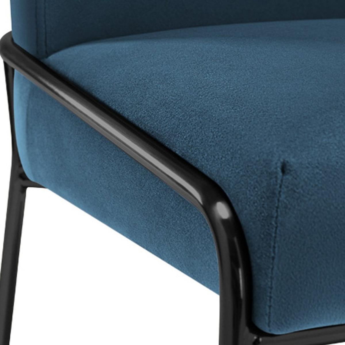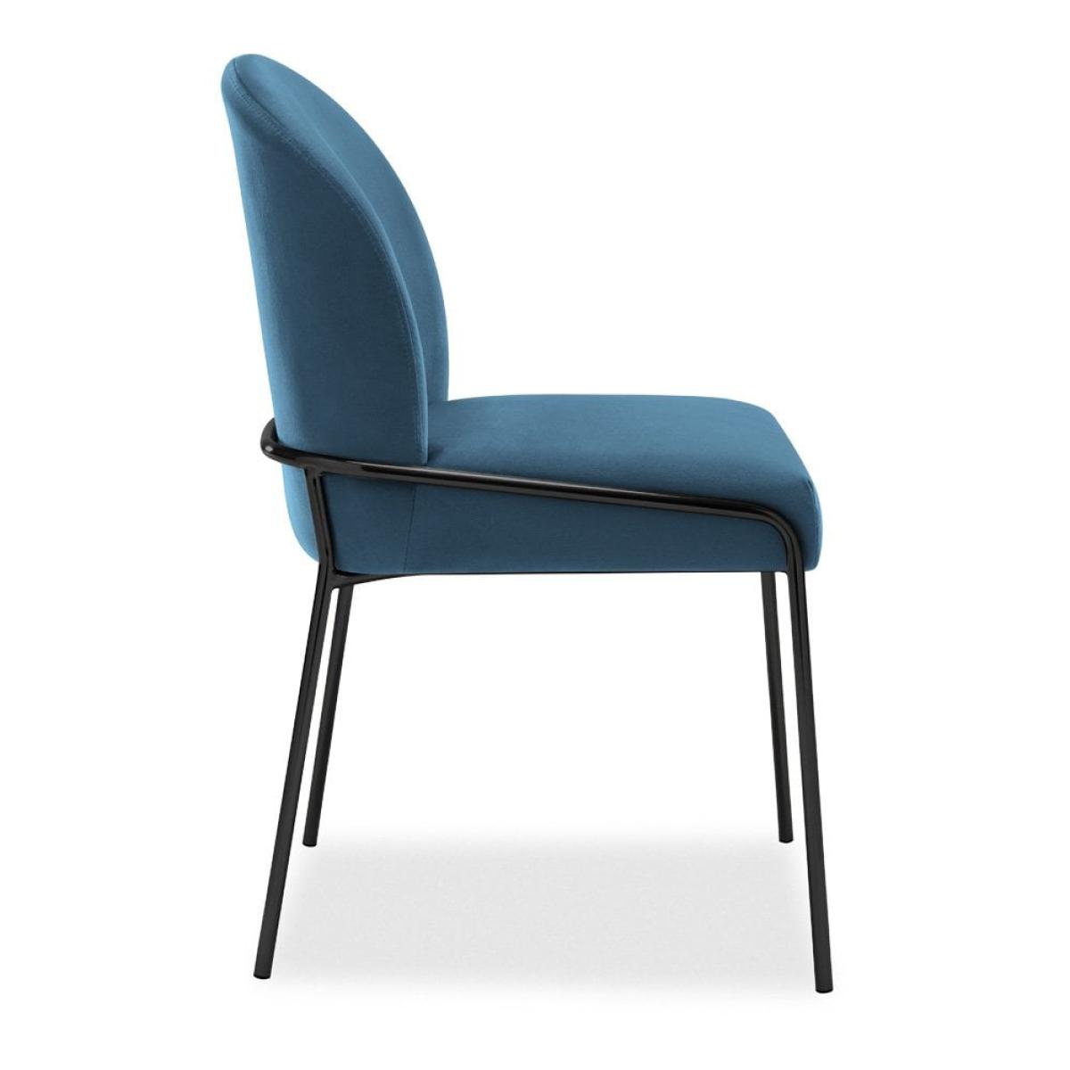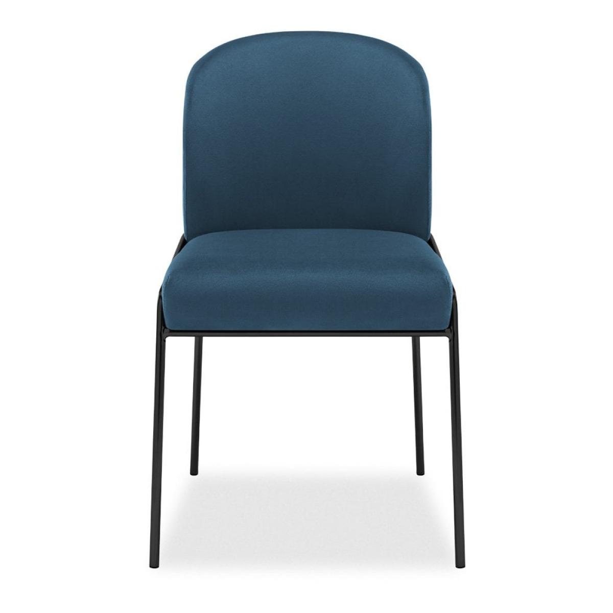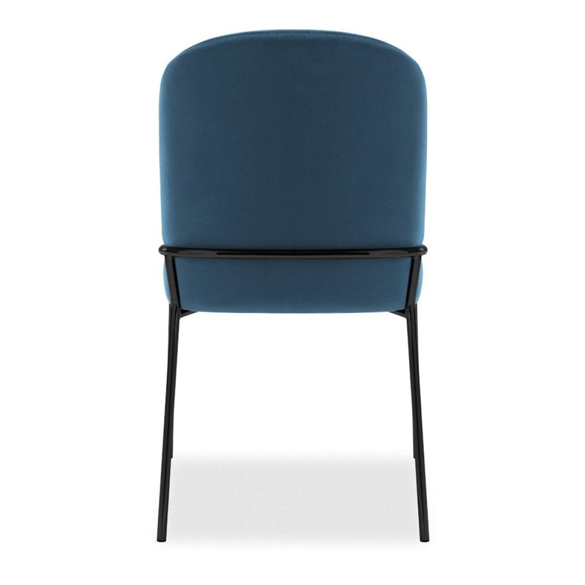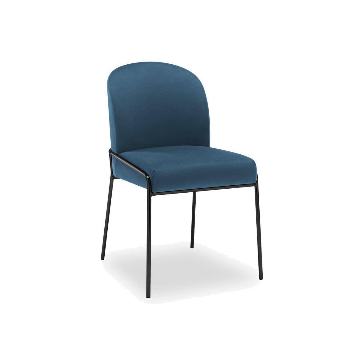 Our Viola dining chair, set on a minimalist metal frame, with soft velvet upholstery. In one of our favourite hues, the midnight blue adds a level of decadence around the dining table. This chair's clean lines, curved upholstered backrest and padded seat will give your dining or kitchen space a much-needed uplift.