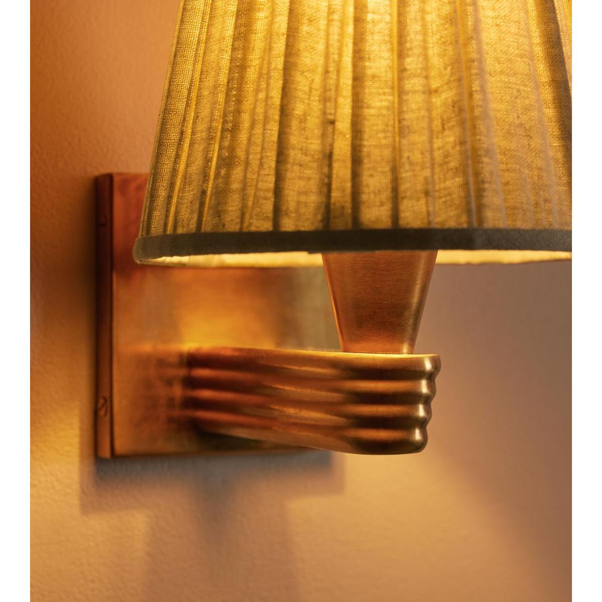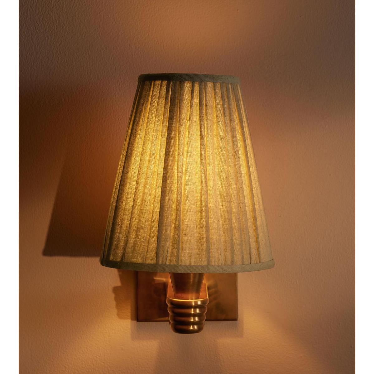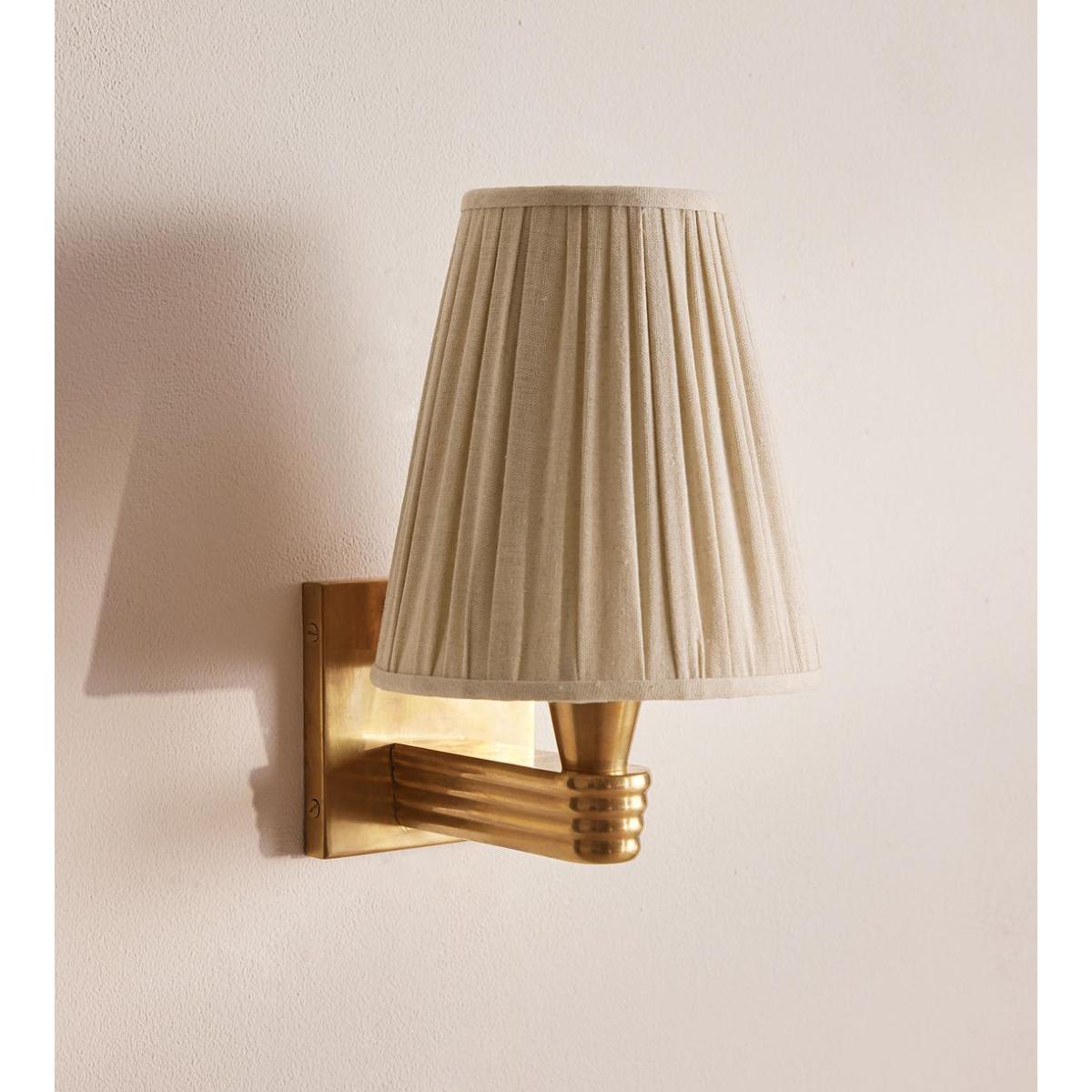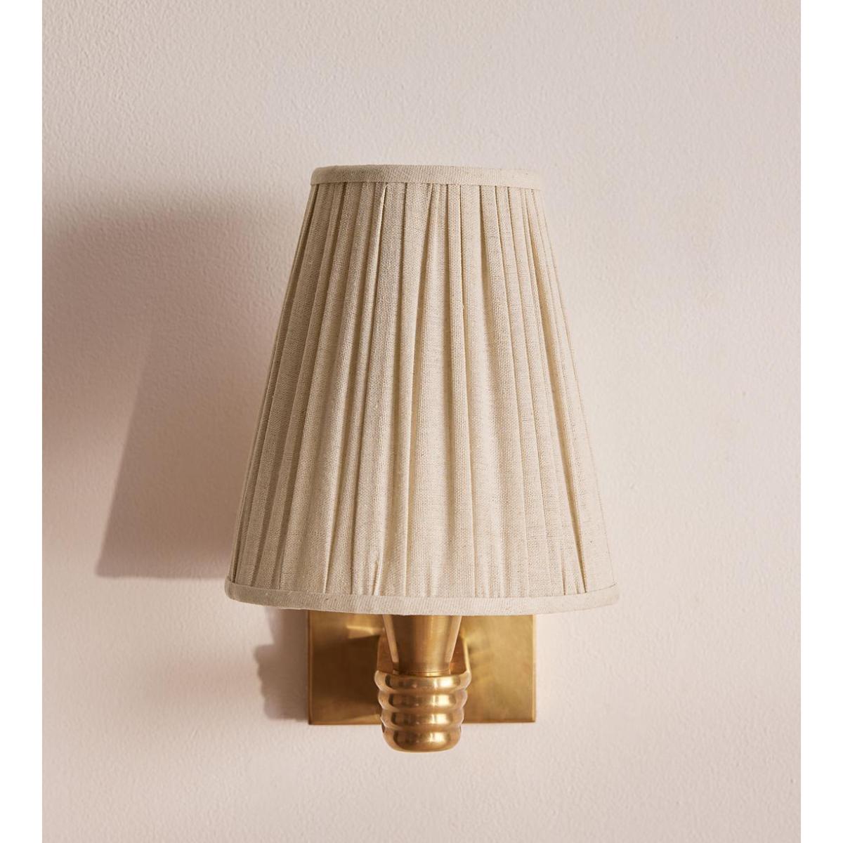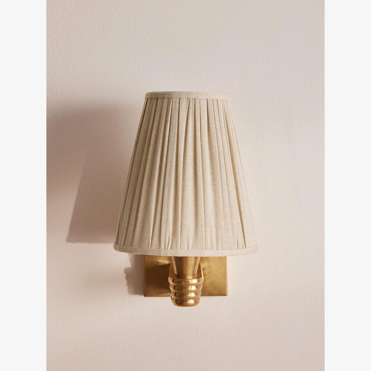 Our Viola wall light emits a soft glow for the hallway or living room. Inspired by Soho House Rome, a linen shade has been hand-pleated alongside a bespoke moulded wall arm in solid brass. Fluted detail adds extra texture and depth to this piece, with the brass finish made to patina over time. Vintage-inspired wall light Hand-pleated linen shade Matching trim Solid brass, bespoke moulded wall arm Fluted detail Will patina over time Inspired by Soho House Rome