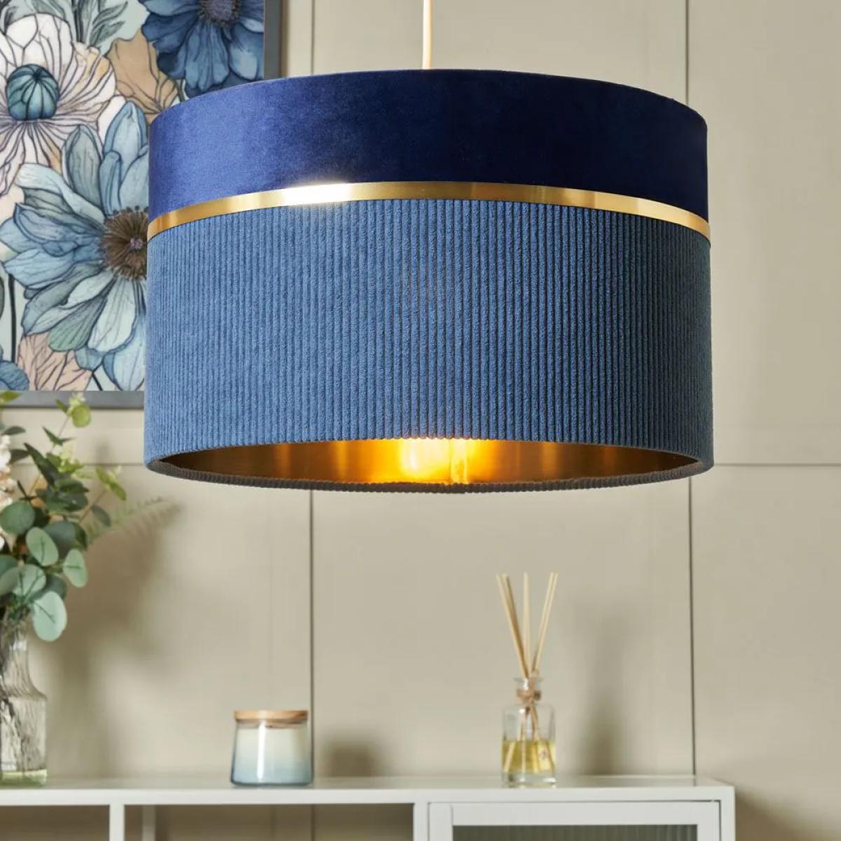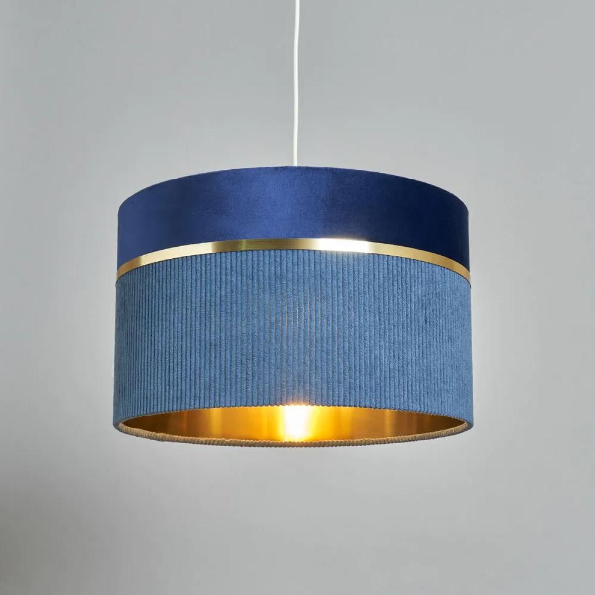 Create a calm, serene atmosphere with the Violet 40cm Mixed Fabric Easyfit Shade in Blue. This large blue shade provides a soothing ambience, perfect for bedrooms, living rooms, or hallways. Its brass lining works effortlessly with any decor style, adding a soft, diffused glow to your home.