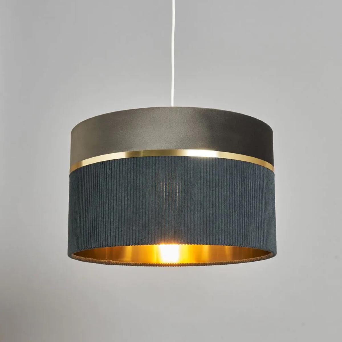 The Violet 40cm Mixed Fabric Easyfit Shade in Grey makes a bold yet sophisticated statement in any room. Its grey fabric shade and brass lining offer a neutral yet modern look, perfect for larger pendants and overhead lighting in living rooms or dining areas. The easy-fit design allows for simple, tool-free installation, making it the perfect choice for any home update.