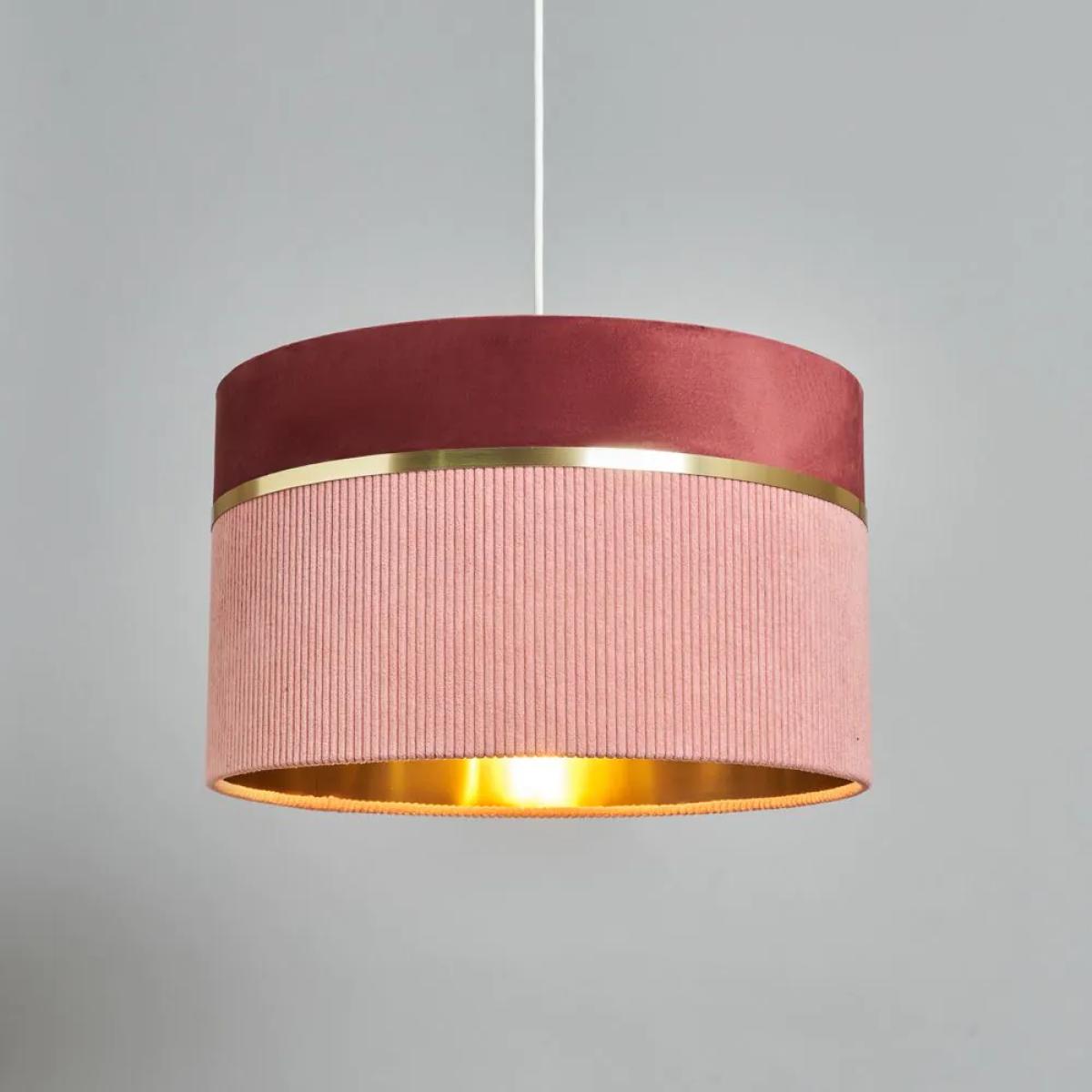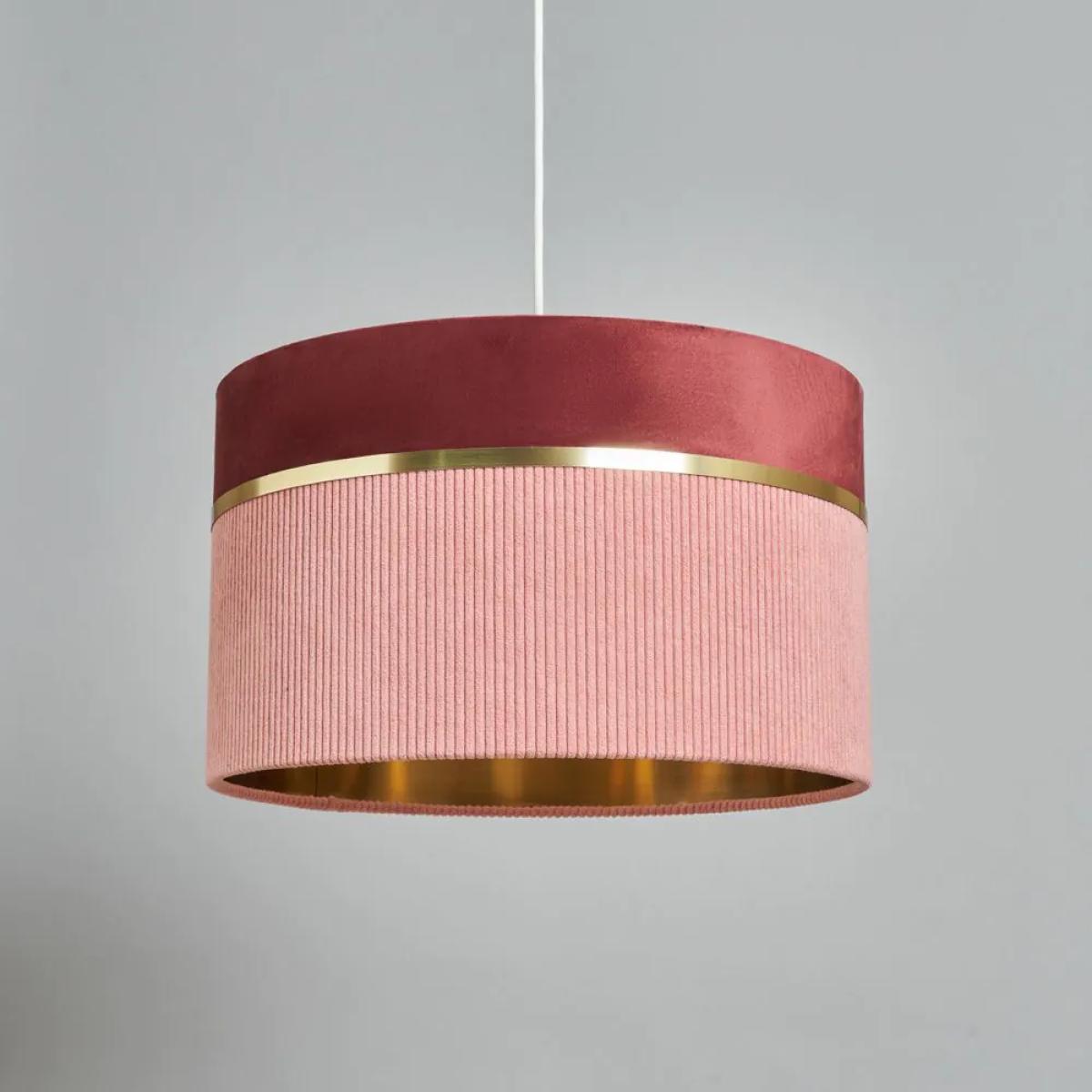 I love this pink fabric shade for its versatile and contemporary appeal. It’s perfect for adding a pop of colour to neutral and minimalist interiors, such as modern living rooms or bedrooms, thanks to its soft hue and textured fabric. The size makes it a statement piece without overwhelming the space, and the mixed fabrics lend a tactile interest that elevates a room's overall design. For styling, consider pairing it with brass or matte black fixtures for a chic contrast, and hang it in spaces with ample ceiling height to make the most of its substantial presence. This shade also works well in a cosy, eclectic setting or as a playful accent in a child’s bedroom, bringing colour and softness to the ceiling area.