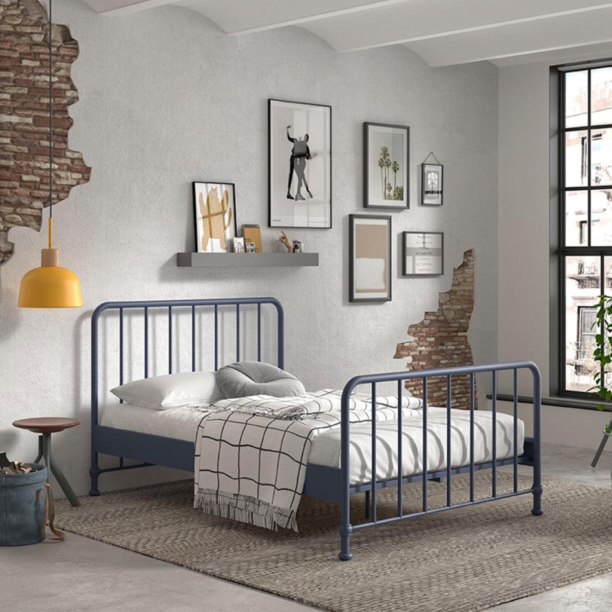 Vipack Bronxx Metal Double Bed - Blue Denim