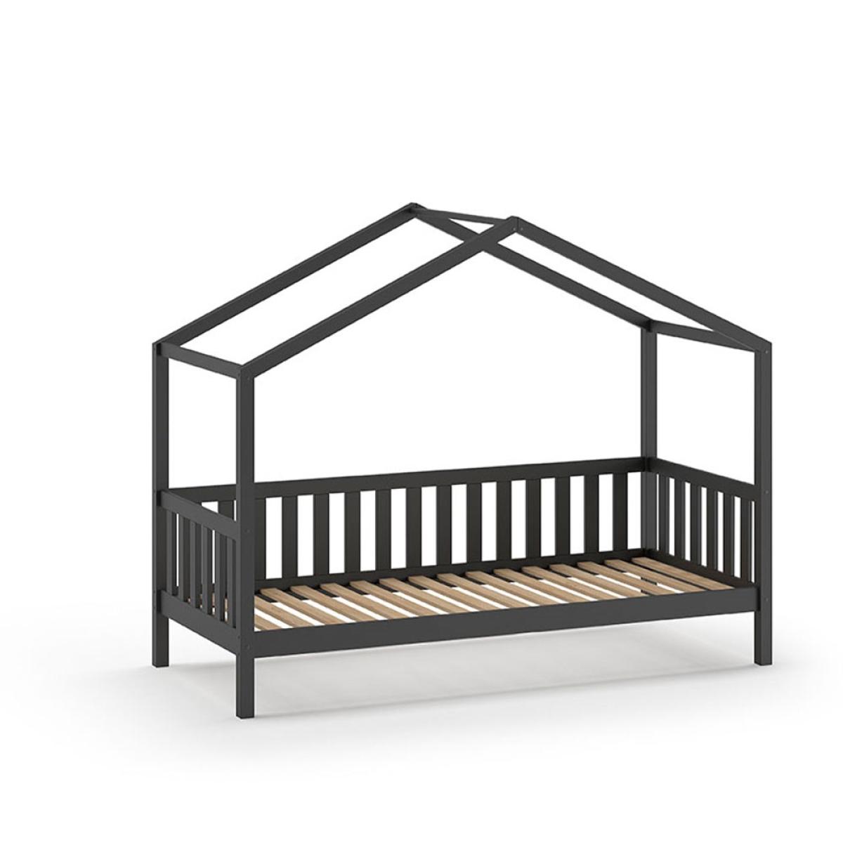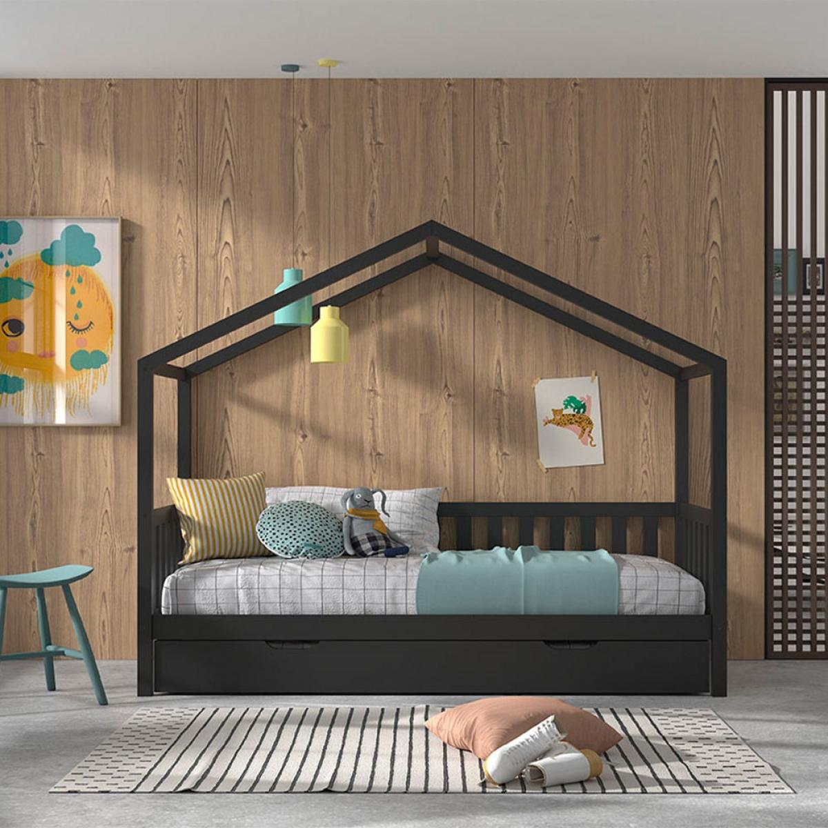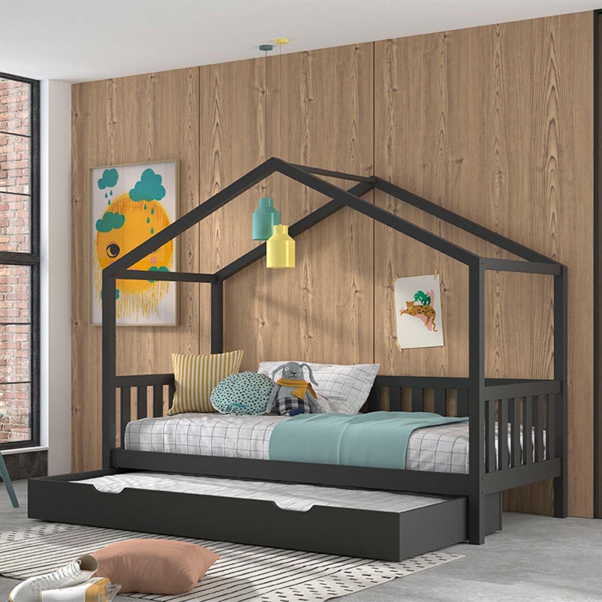 Is this a super cool kids daybed or what? The Dallas Kids Day Bed with Trundle Drawer is a fab offering from the ever-popular Dallas kids bed range from Vipack. This kids four poster house shaped single bed comes in a cool, contemporary dark grey paint finish and would look fantastic in any hip kid’s bedroom. The roof frame looks super sleek alone but can be adorned with a canopy, fairy lights and hanging decorations to create a unique space for your youngster. Throw loads of cushions (and teddy friends) on the bed and the balustrading on three sides will create a perfect space for daytime lounging and story time. When it’s time for sleep, pull open the trundle and sweep all the accoutrements into the useful storage space below. Alternatively, with a second mattress you can create an instant bed for sleepovers. If this is the case, it is absolutely necessary to throw the cushions and teddies around the room for a bit of fun before bedtime. Kiddie heaven!.