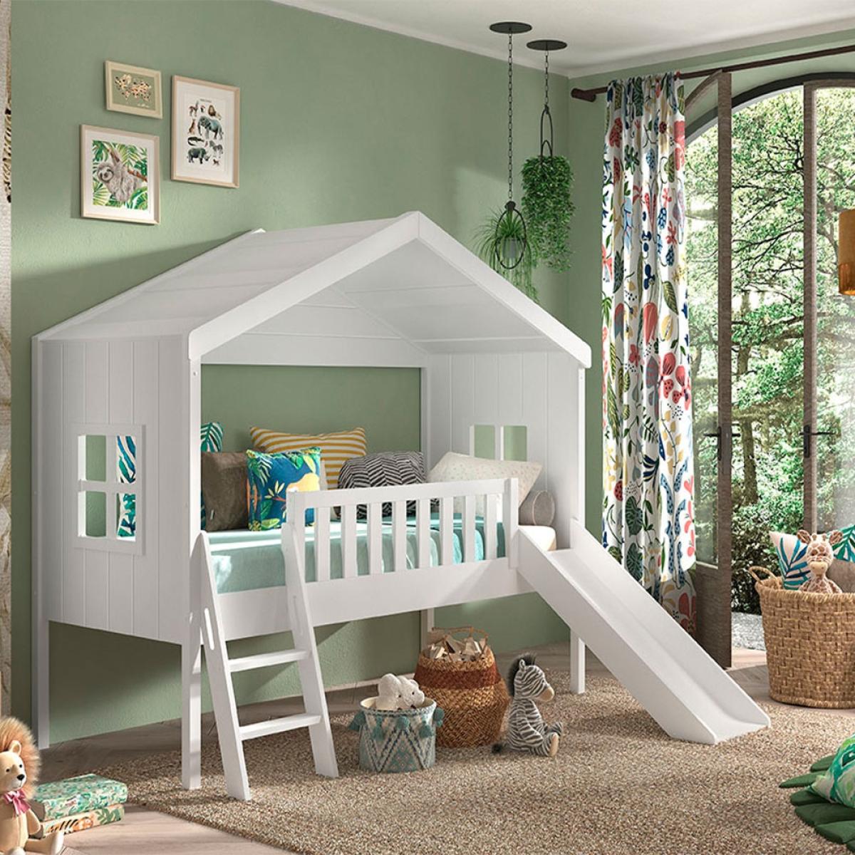 Bedtime has never been so inviting for your little person when you put the Vipack Kids House Bed with Ladder and Slide in their room. The sleepy climb up the ladder followed by the snuggle down in the full-sized single bed will lead to an enchanted night’s sleep in their own little dream house. After a good slumber, a blast down the slide will set them up for the day ahead. The super cute design of this high-quality kids bed has a fully boarded roof and end boards which have cottage style windows – why not style some curtains for extra cuteness?. The picket fence style safety rail and pretty windows add oodles of charm and there is plenty of space below the bed allowing for extra storage (boring!) We vote teddy den - Yay!.