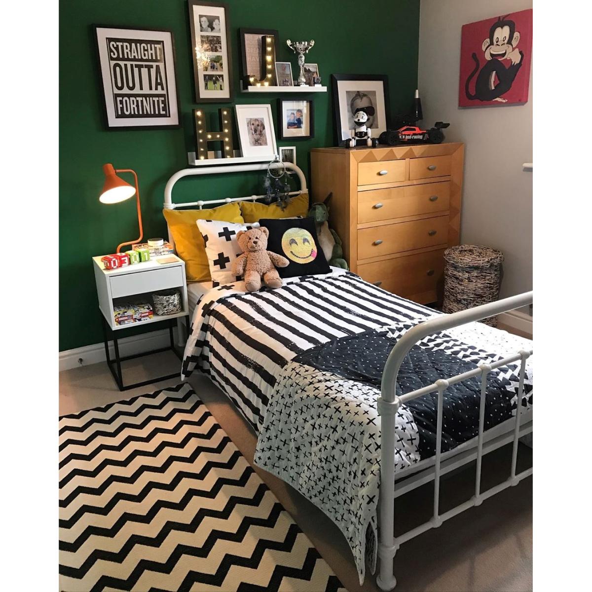 I love this metal bed for its sleek, minimalist design that brings a contemporary touch to a child's bedroom. Its black finish makes it versatile and easy to style with a variety of colour schemes and decor styles-from modern and industrial to more playful or nautical themes. It works particularly well in rooms with a slightly urban or utilitarian vibe, but can be softened with colourful bedding, cushions, or a textured throw to add warmth. For practical styling tips, consider pairing it with under-bed storage to optimise space or mixing in vintage accessories and statement bedding for a personalised look. It’s a great choice for parents who want a sturdy, long-lasting piece that combines function with a stylish edge.