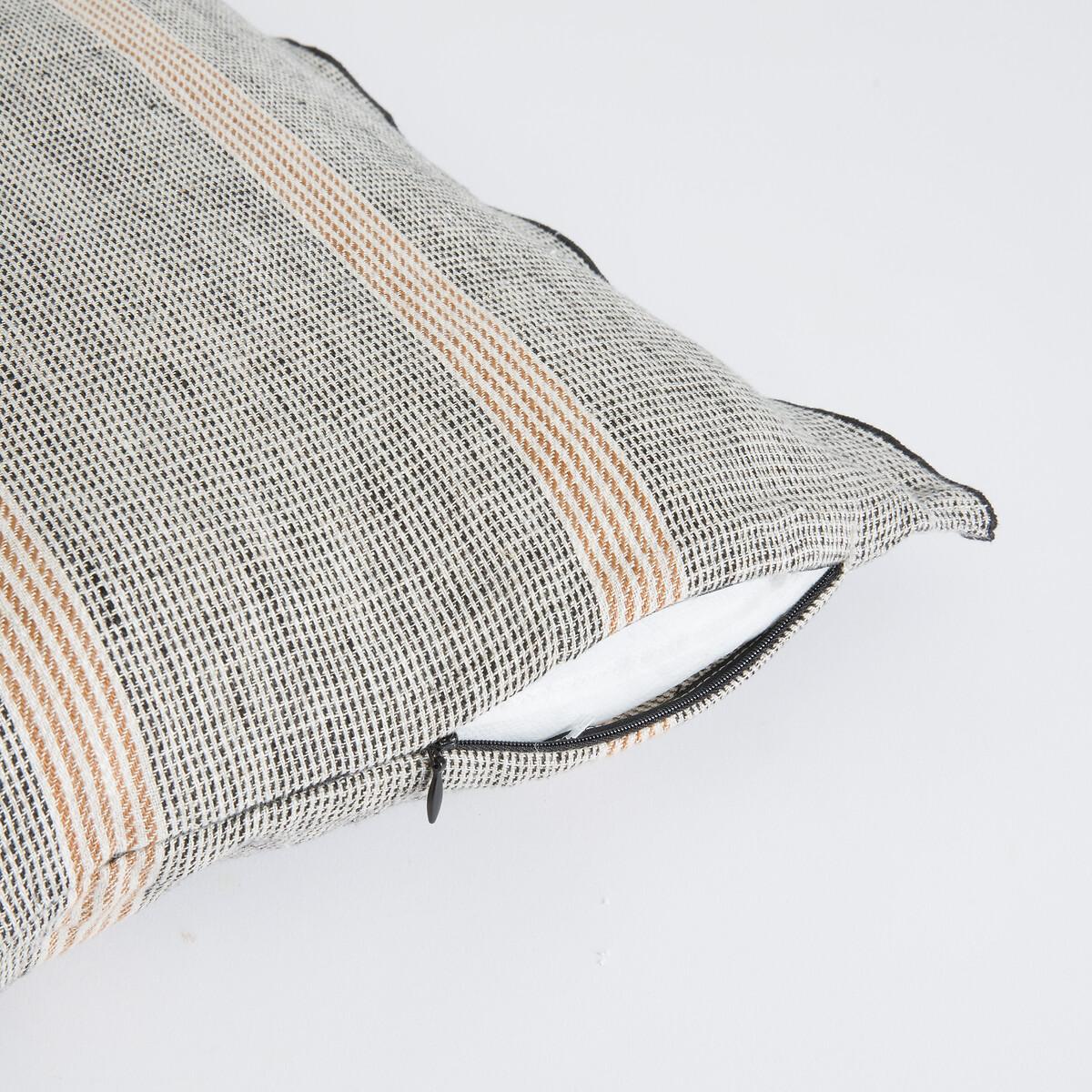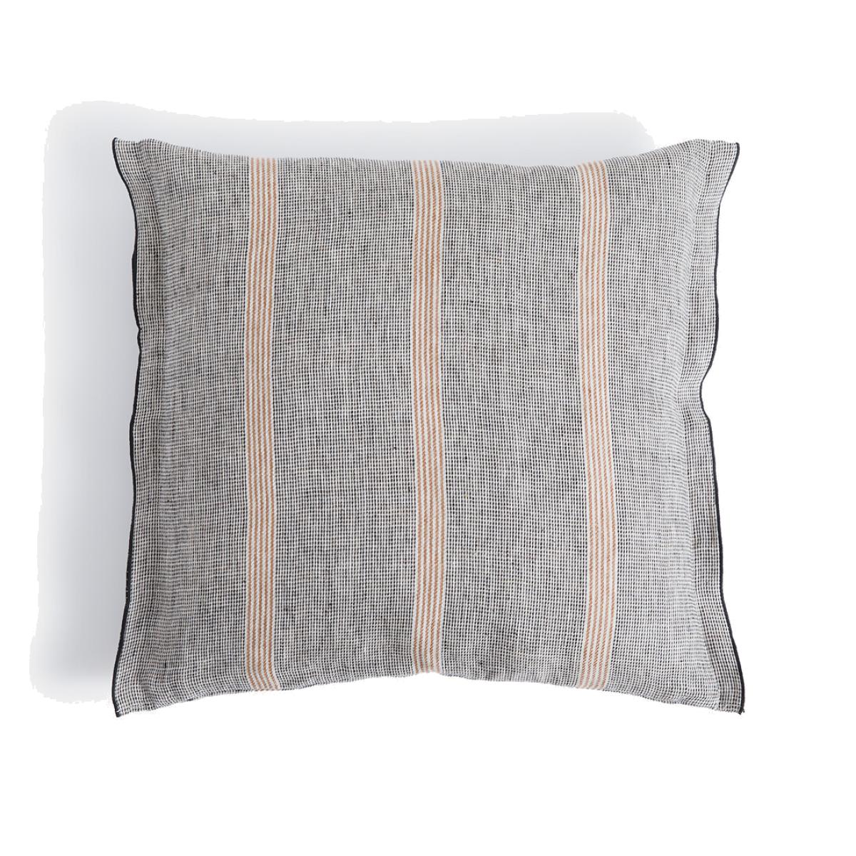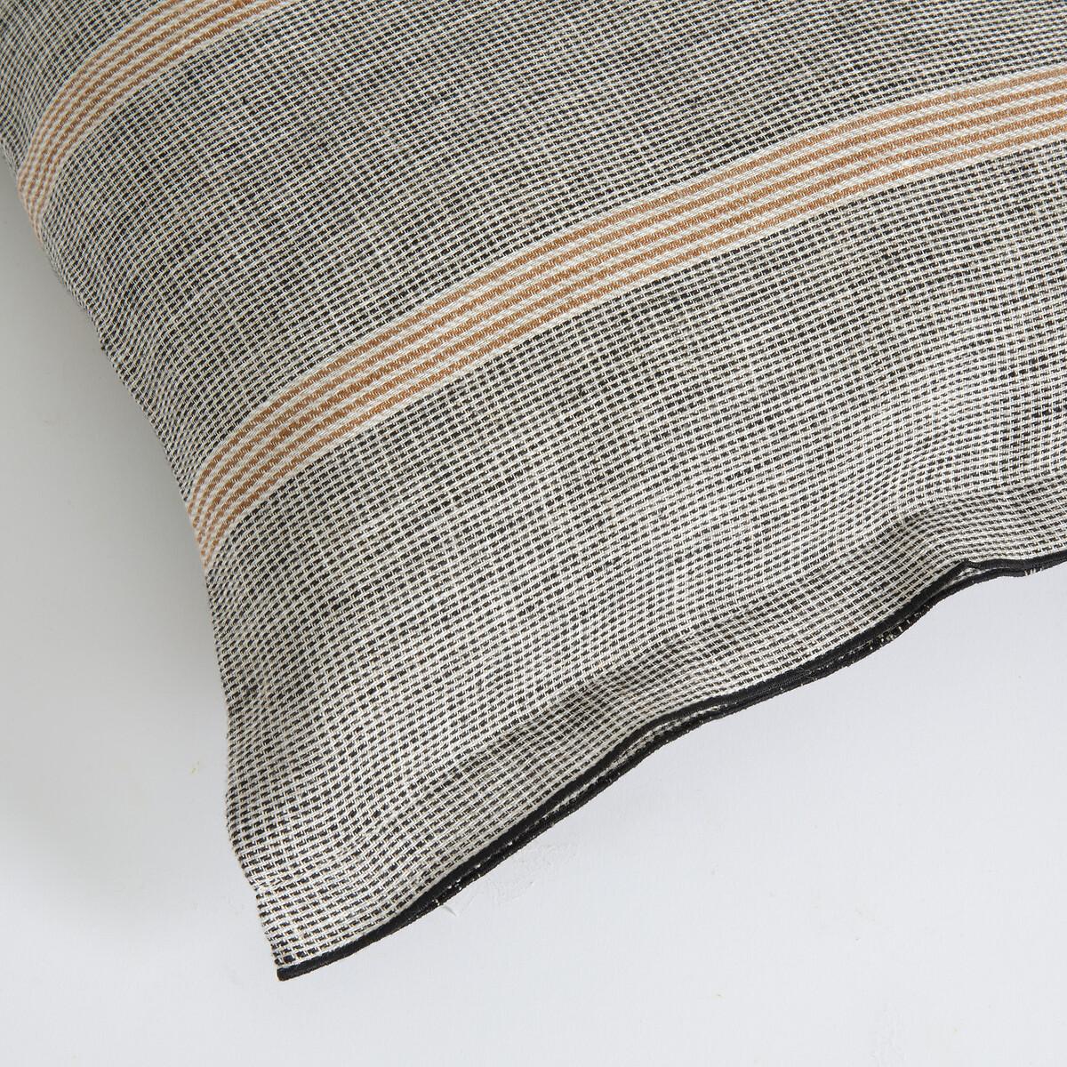 The subtle Virel cushion cover features a striped print on a woven linen background in soft tones. Product Details • 100% linen, 265g/m² • Black bourdon edging and double ruffle finish • Invisible tone-on-tone zip-up closure. Care Advice Follow our care tips to maintain the quality of your linens • Machine washable at 30°C • Iron at average temperature. Dimensions • 50 x 50cm • OEKO-TEX® Standard 100. Standard 100 certification by OEKO-TEX® tests textile products for harmful substances via an independent, international label.