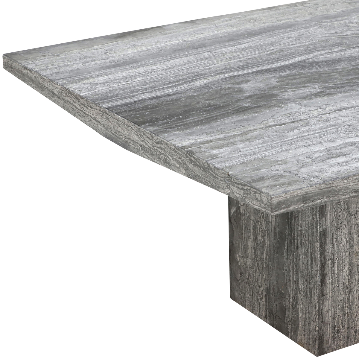 I love this dining table for its modern, minimalist aesthetic and the versatile concrete-like finish that adds an industrial edge. It works particularly well in contemporary, urban interiors or scandinavian styled spaces where clean lines and muted tones are key. When styling, consider pairing it with a mix of statement chairs-perhaps upholstered or with metal accents-to soften the look. Practical tips include keeping the tabletop clear for everyday use and adding a striking centrepiece or layered placemats for special occasions. Its sturdy, geometric base makes it stand out yet remains understated, making it a flexible choice for both casual family dinners and more formal gatherings.
