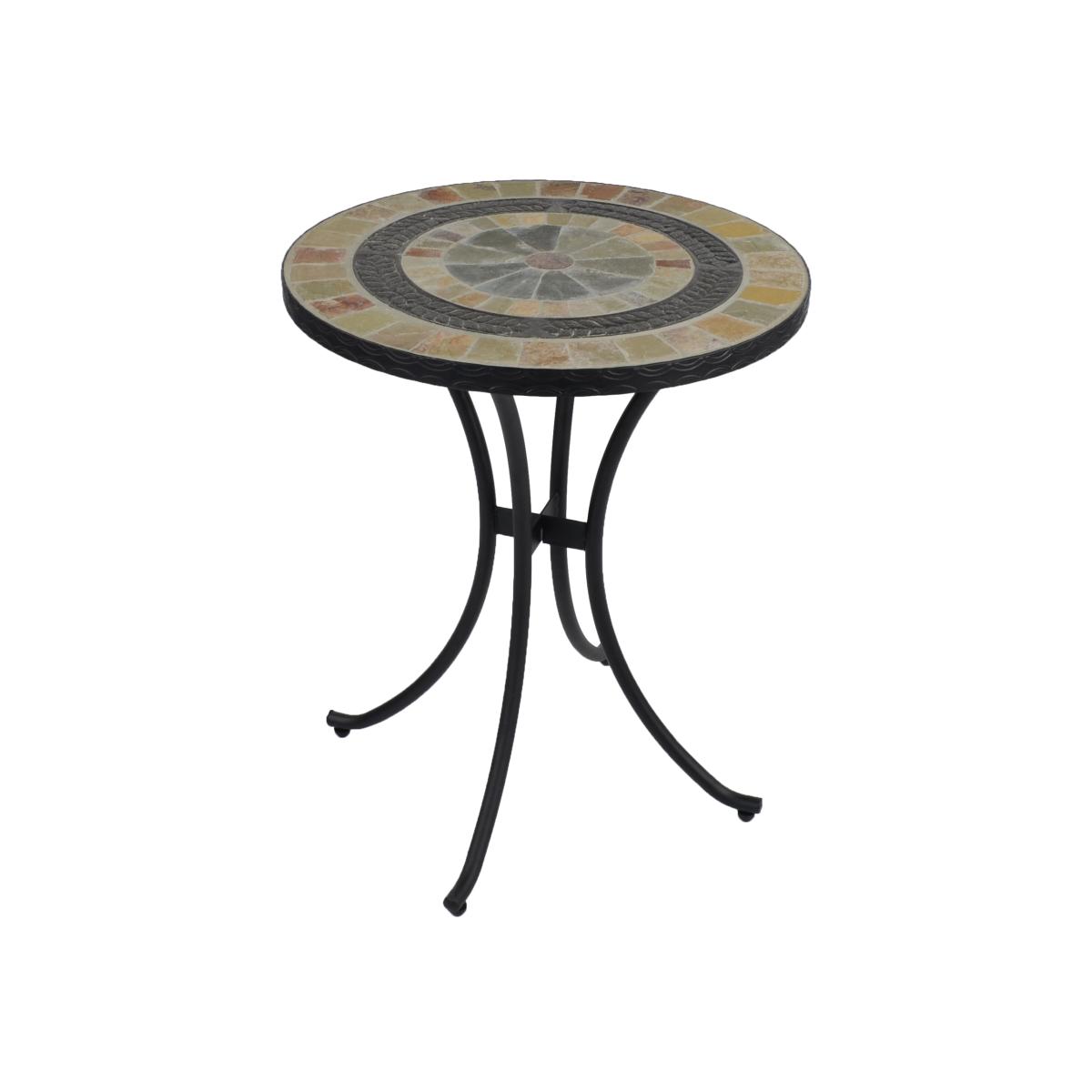 I love the whole vibe of the Virginia bistro table - its compact size and sleek black finish make it perfect for adding a stylish touch to smaller garden spaces or patio corners. It works well in contemporary, Mediterranean, or even rustic settings, especially when paired with colourful, patterned cushions or potted plants to soften the look. Practical styling tips include layering with outdoor-friendly tableware or a small tablecloth for alfresco dining, and adding a couple of lightweight chairs that complement its black frame. Its mosaic top offers visual interest, making it a versatile piece that can elevate both casual and more dressed-up garden settings.