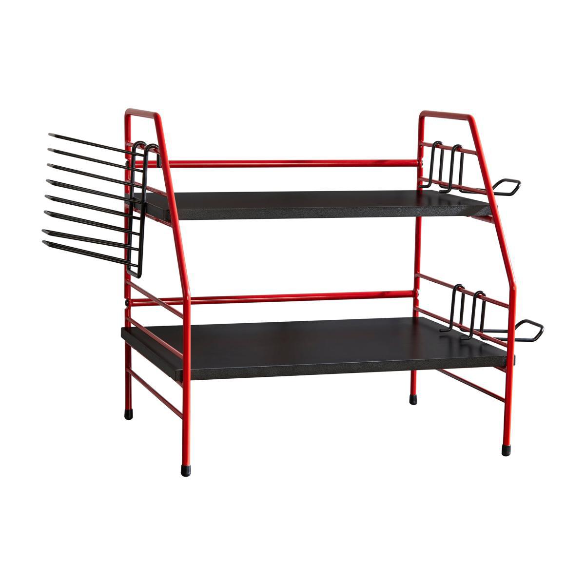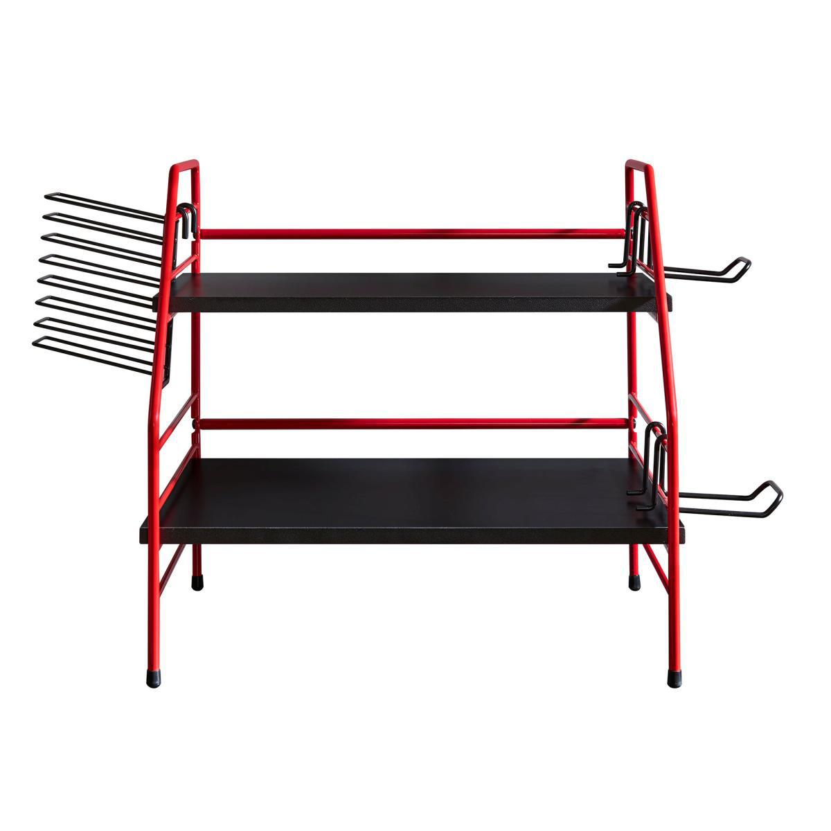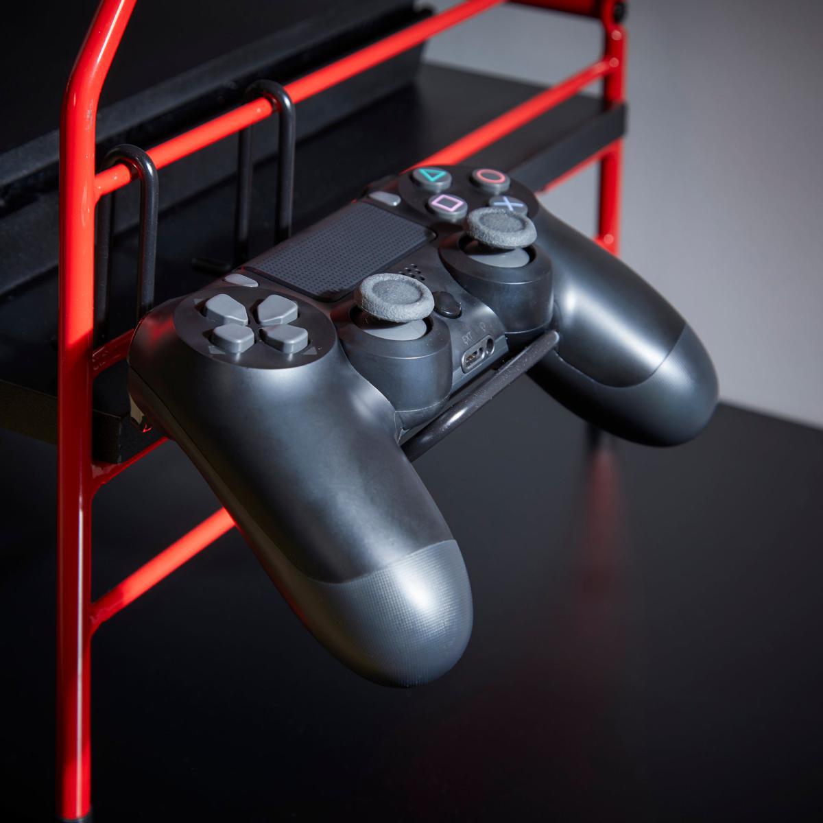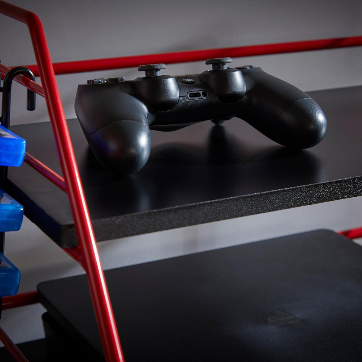 I love this gaming caddy for its vibrant red and black colour scheme, which adds a bold, energetic vibe to any gaming setup. It works particularly well in modern, industrial, or even eclectic interiors where statement pieces are key. The open and functional design makes it practical for organising gaming gear, controllers, and snacks without clutter. To style it effectively, consider pairing it with sleek black or red storage boxes, or even contrasting elements like wood or matte finishes to make it stand out. It's a versatile option for creating a dedicated gaming zone that looks intentional and tidy, while still feeling fun and dynamic.