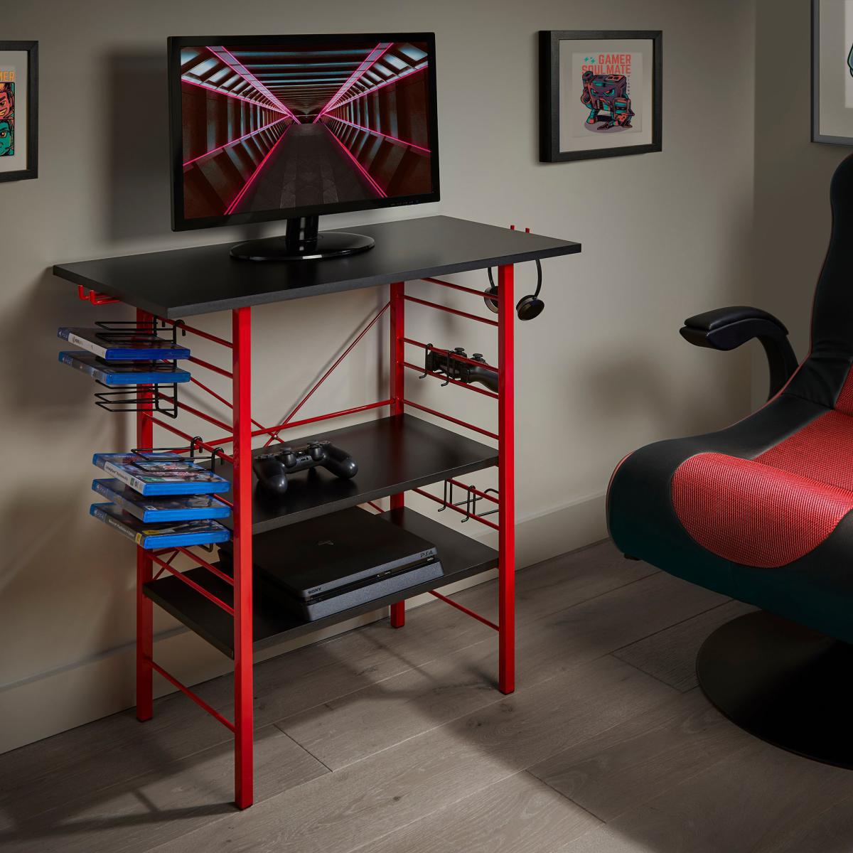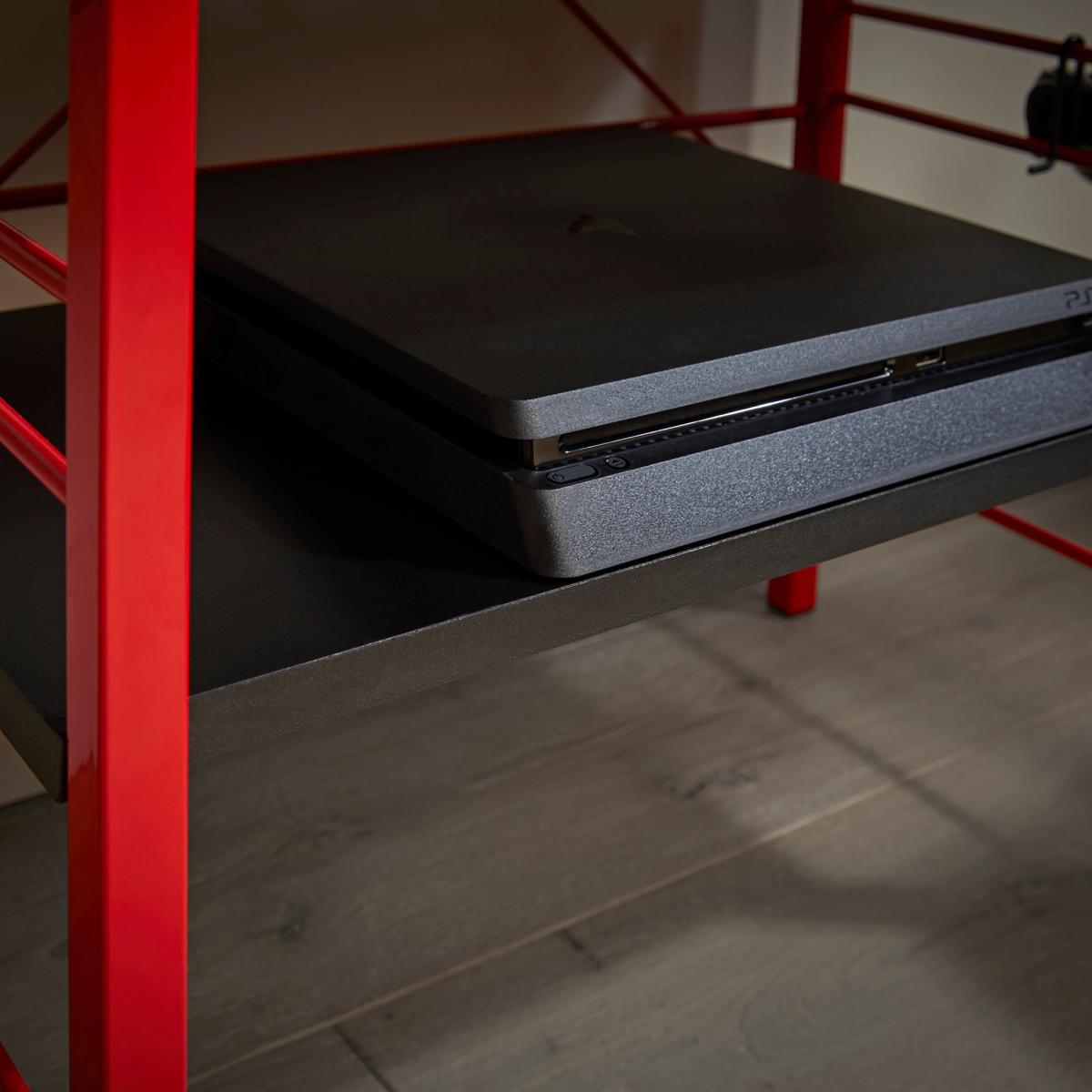 I love this gaming TV stand for its bold colour combination and functional design, making it a statement piece in a dedicated entertainment or gaming room. The red and black palette lends itself well to modern, industrial, or contemporary interiors where a pop of colour can energise the space. Practical styling tips include pairing it with sleek, minimalist furniture to let it stand out or setting it against a neutral wall to keep the focus on its vibrant colours. Additionally, its tiered shelves and side racks offer ample storage for consoles, controllers, and accessories, making it as practical as it is stylish - perfect for creating a dedicated gaming zone that looks great and keeps everything organised.