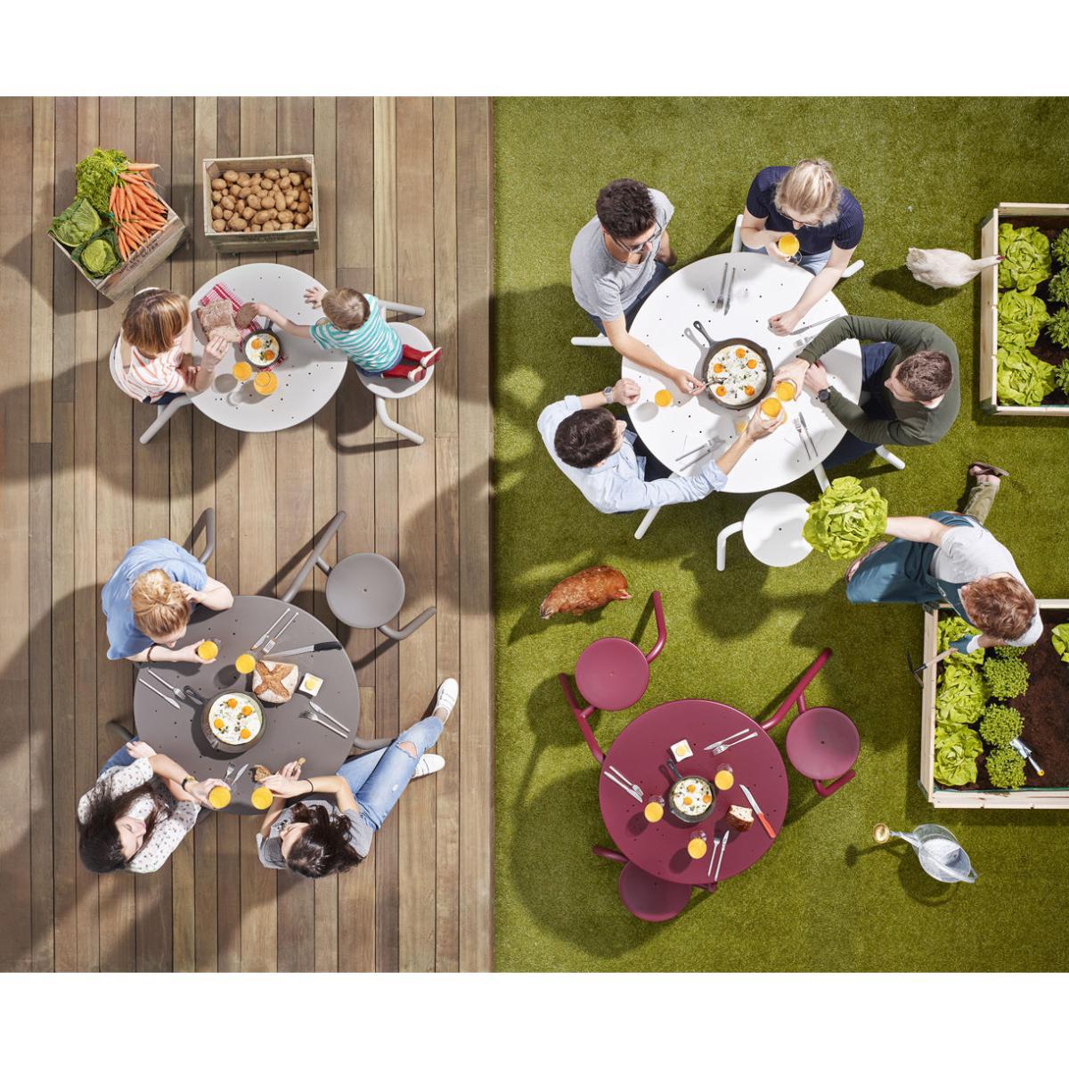 Virus is a picnic table in various guises. Dirk Wynants has designed different versions based on an identical seating frame for two or three people. This is a fun way of filling a space with a mixture of small to medium-sized seating sets without losing uniformity. What is more, the compact design responds to the trend for smaller living spaces, offering a solution that enables you to use our tools on balconies and in urban gardens. There, too, there is an ideal Virus table for every gathering. So expect nothing less than togetherness everywhere!.