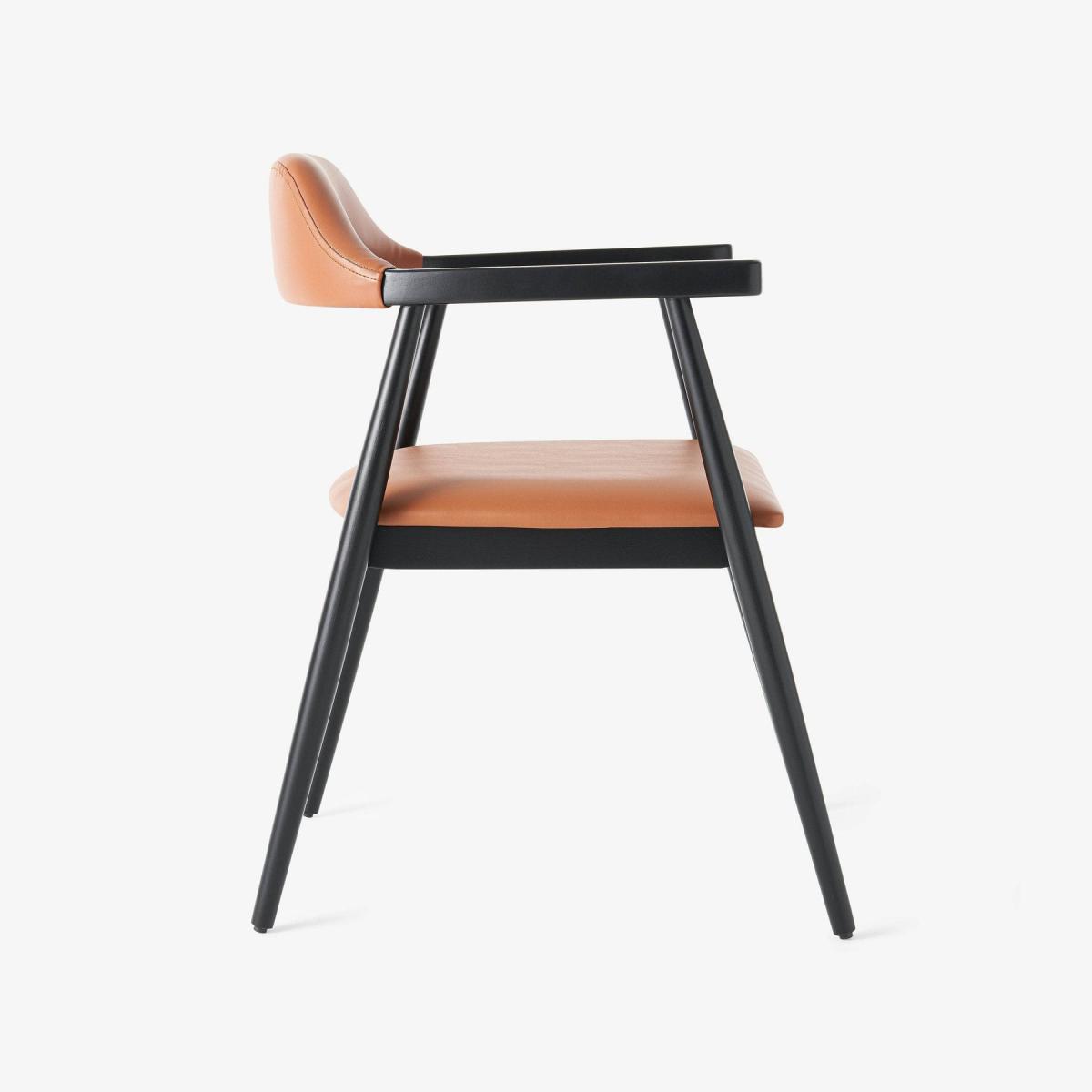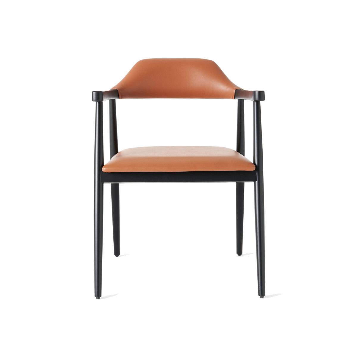 Make guests feel welcome in our inviting Visby armchair. Its curved back and wide arms create a supportive yet relaxed seating experience that is ideal for a dining room or home office. Inspired by mid-century design, Visby has a timeless feel and elegant expression that will continue to impress from one year to the next. Suitable for both classic and contemporary interiors, the Visby armchair is set to be a classic piece in your home. It comes in a sophisticated black stain finish with a tan leather seat and can be used in a variety of settings.