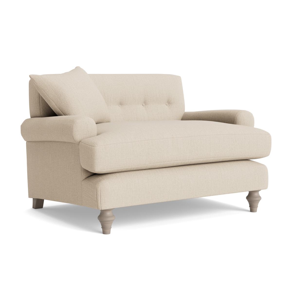 A single row of buttons is the statement feature in our captivating new Visby made to order range. With its modern take on country house styling, the cosy Visby loveseat features low scrolled arms for a spacious open feel. The seat cushion is enticingly plump with feather and foam fill and offers space to spread out or snuggle together. A matching scatter cushion adds extra comfort and carved oak legs enhance the elegant lines. The Visby range also includes a two seater and a three seater sofa, an armchair and an ottoman. Pictured here in our Sand Herringbone material, our Visby collection can be upholstered in a choice of 33 distinctive shades and five fabrics to suit your style. Read our Upholstery FAQs View our full Upholstery Terms and Conditions.