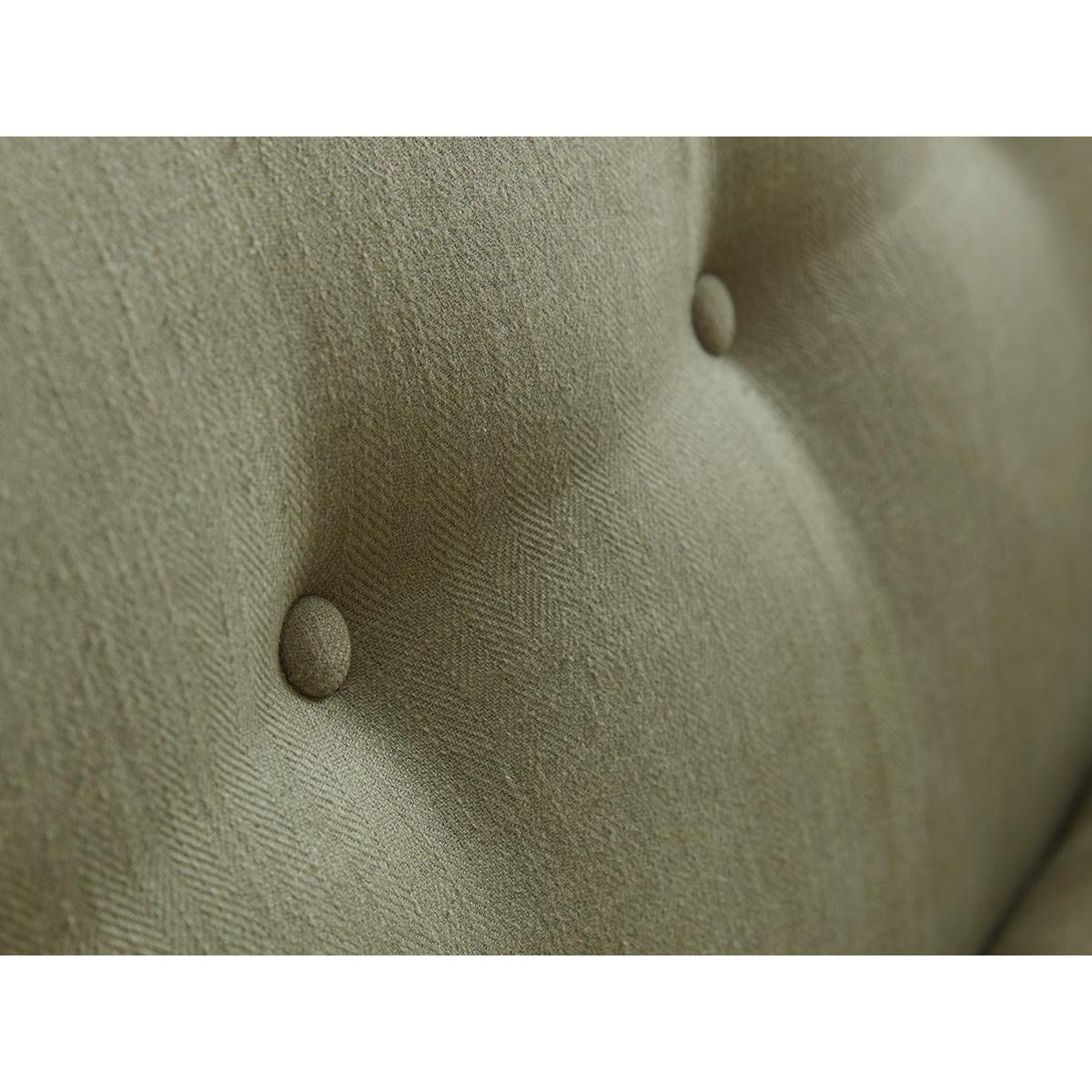 A single row of buttons is the statement feature in our captivating new Visby made to order range. With its modern take on country house styling, the sofa features low scrolled arms for a spacious open feel. The two seat cushions are enticingly plump with feather and foam fill. Matching scatter cushions add extra comfort and carved oak legs enhance the elegant lines. The Visby range also includes a loveseat, an armchair and an ottoman. Pictured here in our Fern Herringbone material, our Visby collection can be upholstered in a choice of 33 distinctive shades and five fabrics to suit your style. Read our Upholstery FAQs View our full Upholstery Terms and Conditions