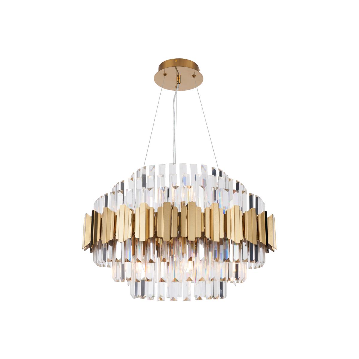 Transform your space with the Visconte Furore 6-Tier Ceiling Pendant in Brass. The six tiers of this brass ceiling light adds a touch of grandeur and modern sophistication to your decor. With its luxurious brass finish of this 9 light ceiling fixture adds a warm accent to your rooms decor.