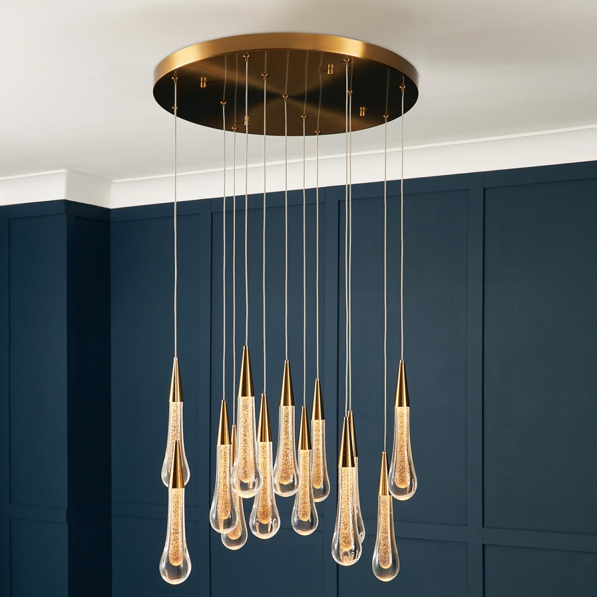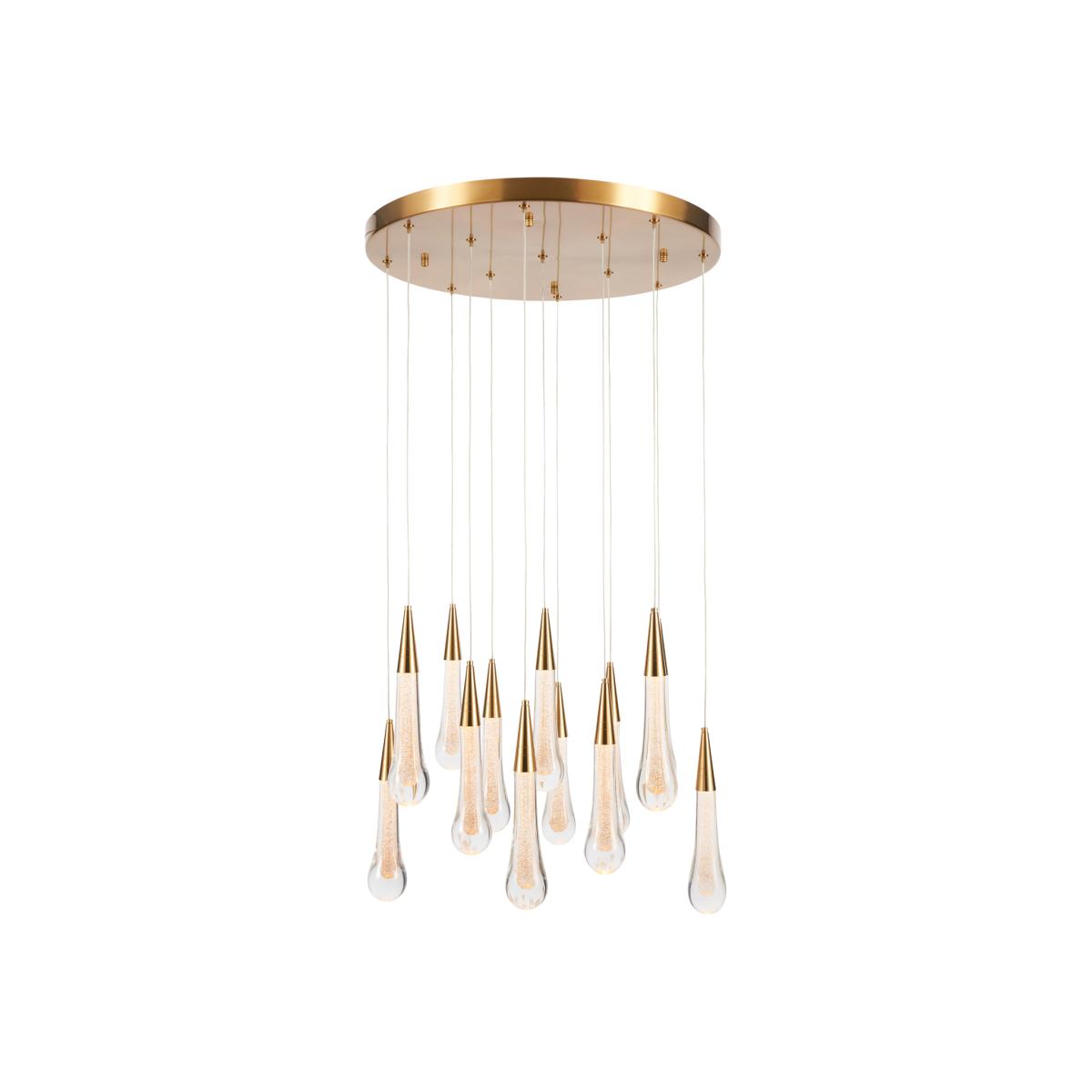 The Visconte Positano 13 Light Chandelier in Satin Brass is a masterpiece of luxury and modern style. The LEDs of this cluster pendant light marry high luxury to practical energy-efficiency. The satin brass finish of this 13 light chandelier elevates your decor with a touch of opulence as well as emitting a warm inviting glow.
