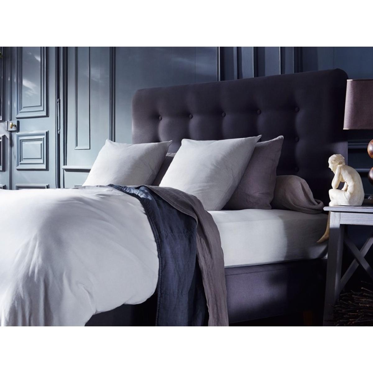 The Vispring Achilles Strutted Headboard is a contemporary take on the classic buttoned Vispring design, available in a wide selection of fabrics and color options from Vispring's extensive collection. Perfectly complementing your Vispring bed, these headboards come in an array of styles to match any taste and décor. Handcrafted using premium materials, they provide both comfort and visual elegance. Key Features: Bed Fixing on Struts - This bed fixing option uses the traditional headboard design with wooden fixing posts attached to the back. Approved by the National Bed Federation (NBF) ensuring it has been manufactured to the highest UK standards Eye-catching design with button detailing A choice of 3 headboard fixing options Available in a wide range of colours and fabrics Made from FSC certified timber - the mark of responsible forestry Dimensions: Single - W 90cm (3ft) x H 80cm (31.5'') x D 11cm (4.3’’) Small Double - W 120cm (4ft) x H 80cm (31.5'') x D 11cm (4.3’’) Double - W 135cm (4ft6) x H 80cm (31.5'') x D 11cm (4.3’’) King Size - W 150cm (5ft) x H 80cm (31.5'') x D 11cm (4.3’’) Super King Size - W 180cm (6ft) x H 80cm (31.5'') x D 11cm (4.3’’) Please note: Height given is from mattress to top of headboard All screens vary in colour reproduction and whilst every effort has been made to display the colour as accurately as possible it is for guidance only.