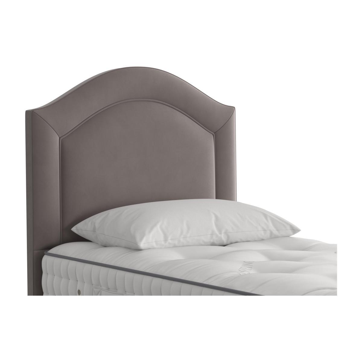 The Vispring Artemis headboard has a timeless and sophisticated style that suits both the classic and the modern bedroom equally well. It is luxuriously made and beautifully finished with an arched top, deeply cushioned border and cushioned central panel. Choose your favourite shade in a wide choice of fine upholstery. An elegant finishing touch for your Vispring divan bed, or any standard sized divan bed. Elegantly arched, timelessly stylish headboard from Vispring. Comfortably cushioned, with a deeply padded border. Upholstered in an extensive choice of fabrics and on trend colours. 100% wool, faux suedes, velvet mixes, satins, canvas and linen weaves. Attaches with ease to any Vispring divan or standard sized divan. UK attachments supplied, Euro-style attachments available. Colour displayed is. Gem Shell 2024.