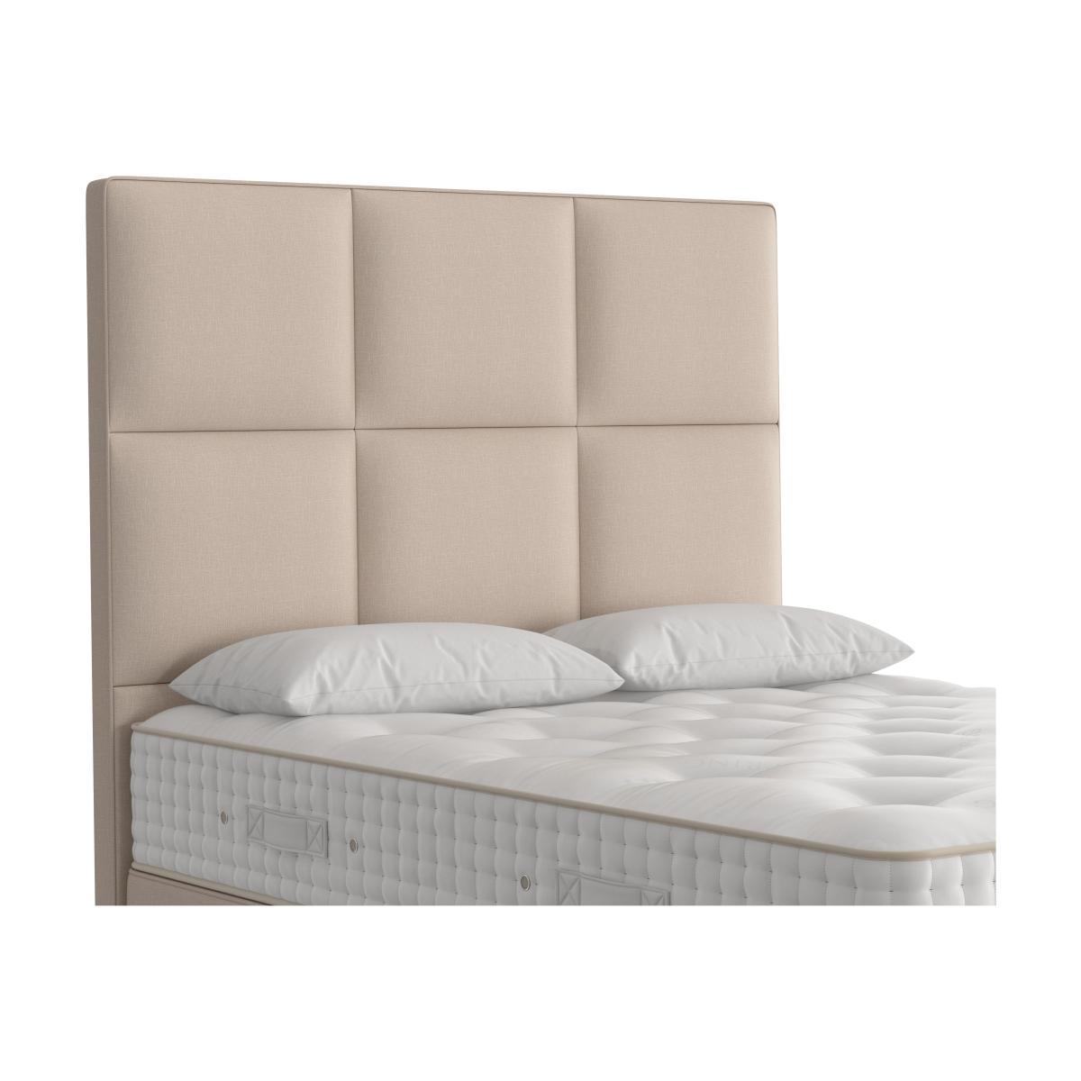 The Atlas's contemporary design with deep upholstered panels makes a bold, eye-catching statement, particularly when teamed with one of Vispring's classic divan beds. In a wide choice of fine fabrics, in a selection of beautiful shades. The perfect way to add that luxurious finishing touch into your bedroom. Colour displayed is Touch Rose. A modern update on the classic panelled headboard, the Vispring Atlas floor standing headboard brings clean contemporary style to any bedroom. Fully upholstered from top to floor in a wide choice of colours, this headboard features perfectly symmetrical deep fluting that creates bold and eye-catching upholstered panels. Like all headboards in the Furniture Village Vispring headboard collection, this headboard is intended to partner a Vispring divan base. However, it works perfectly with any standard size divan base, affixing easily using the supplied hardware. Chic and modern, the Vispring Atlas is handcrafted in Britain.