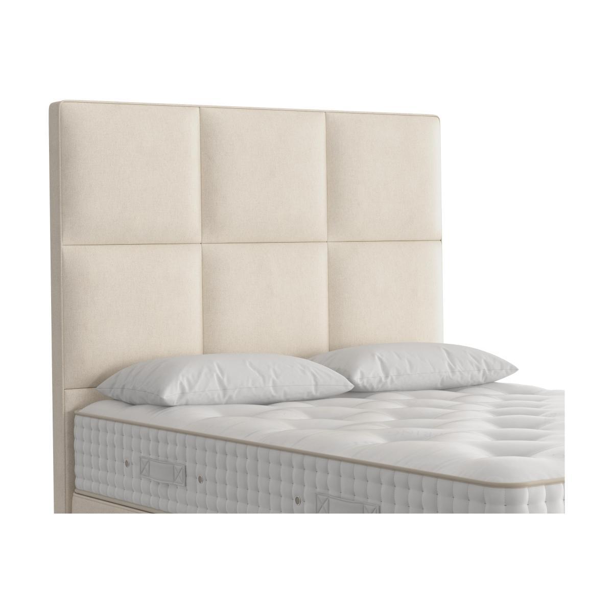 The Atlas's contemporary design with deep upholstered panels makes a bold, eye-catching statement, particularly when teamed with one of Vispring's classic divan beds. In a wide choice of fine fabrics, in a selection of beautiful shades. The perfect way to add that luxurious finishing touch into your bedroom. Colour displayed is Touch Rose. A modern update on the classic panelled headboard, the Vispring Atlas floor standing headboard brings clean contemporary style to any bedroom. Fully upholstered from top to floor in a wide choice of colours, this headboard features perfectly symmetrical deep fluting that creates bold and eye-catching upholstered panels. Like all headboards in the Furniture Village Vispring headboard collection, this headboard is intended to partner a Vispring divan base. However, it works perfectly with any standard size divan base, affixing easily using the supplied hardware. Chic and modern, the Vispring Atlas is handcrafted in Britain.