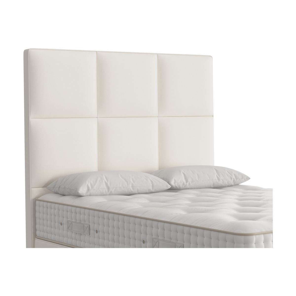 The Atlas's contemporary design with deep upholstered panels makes a bold, eye-catching statement, particularly when teamed with one of Vispring's classic divan beds. In a wide choice of fine fabrics, in a selection of beautiful shades. The perfect way to add that luxurious finishing touch into your bedroom. Colour displayed is Touch Rose. A modern update on the classic panelled headboard, the Vispring Atlas floor standing headboard brings clean contemporary style to any bedroom. Fully upholstered from top to floor in a wide choice of colours, this headboard features perfectly symmetrical deep fluting that creates bold and eye-catching upholstered panels. Like all headboards in the Furniture Village Vispring headboard collection, this headboard is intended to partner a Vispring divan base. However, it works perfectly with any standard size divan base, affixing easily using the supplied hardware. Chic and modern, the Vispring Atlas is handcrafted in Britain.