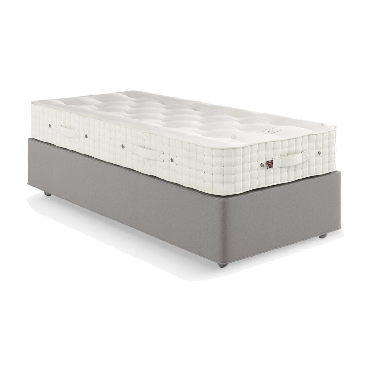 This set pairs Vispring's Axminster Supreme 2500 mattress with their Premier sprung divan base. Axminster Supreme 2500 Mattress Handmade in the UK with a steel pocket spring system and layers of natural materials, this mattress provides pressure-relieving support and is tailored towards a medium tension level of comfort. Insulating New Zealand wool and breathable cotton help to maintain an effective airflow throughout the night, and the addition of silk and cashmere layers makes it especially luxurious. The hand-nested pocket springs are produced in a honeycomb formation, which provides accurate pressure-relief and helps to keep your body weight evenly distributed. This mattress is finished with an exclusive M-PURE cover which is chemical-free and flame retardant. The cover has passed rigorous testing that’s required by the British Safety & Fire Regulations. Made from a natural, bio-based raw material, it continues to reduce the environmental footprint of Vispring products throughout their full life cycle. Four rows of hand side-stitching and cotton felt tufts ensure all natural fillings are kept in place. Premier Divan Base A sprung, supportive and durable foundation for your mattress, this divan base is made from high-quality FSC-certified materials. Traditionally glued and screwed, the pocket springs are produced in an edge-to-edge format in order to maintain the structure of the base and keep your body weight evenly distributed, and the natural fibres maintain effective ventilation. The slow-grown Scandinavian softwood and hardwood used in this base has FSC accreditation. The production process is monitored and all materials used can be traced to ensure responsible manufacturing. Vispring’s 30 year guarantee To register your guarantee, please click Try before you buy This is an important purchase and it’s worthwhile to try your choice of mattress in one of our shops to make sure it’s right for you. Our Partners will be able to tell you more about its benefits and recommend options based on your specific needs.