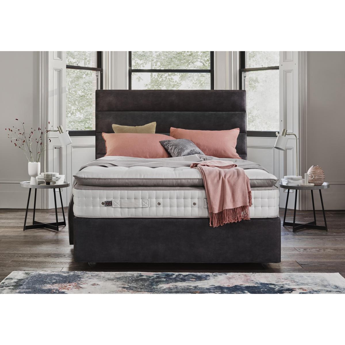 World-famous for its luxury beds and mattresses, Vispring has exceeded itself with the Baroness collection. Featuring one of Vispring's very first pillow top mattresses, the range showcases the high-quality materials – super-supportive vanadium steel pocket springs, gorgeous natural fillings – for which this brand is rightly famous. And, like all Vispring mattresses, it’s handcrafted with painstaking attention to detail. The pillow top even has two layers of micro springs. Sleep like royalty or, at least, like landed gentry with this superb divan set from master bed crafter Vispring. We love the sumptuous pillow top with two layers of micro springs and the wide choice of drawer options. Why you’ll love it Beautiful divan set features one of Vispring’s very first pillow top mattresses. Luxurious comfort crafted to exceptionally high standards. Offers wonderful support thanks to 1326 pocket springs in king size. Pillow top has 2 micro spring layers and resilient fillings for softness that helps to reduce sagging. Natural wool and cotton fillings are hypoallergenic. In a choice of spring tensions for personalised comfort. Wide choice of fine fabrics for the divan base. Five different optional storage drawer configurations. The range also includes a standalone mattress. Handmade to order in Britain by Vispring. Exclusively available at Furniture Village. What you need to know Headboard shown is available seperately. Mattress type: Pocket spring. Depth: 31 cm including a 10 cm pillow top. Firmness:Soft, medium, firm; split tension available in king and super king sizes. Springs: 1326 hand-nested, six-coil steel pocket springs in king size. Pillow top:Yes, with micro springs, real Shetland wool, Airstream Memory Wool and Cocolok. Fillings: British wool, British cotton. Borders: Wool-upholstered, 2 rows of hand side-stitching, horizontal handles, air vents. Edge support: Hand side stitched to create edges that support just the same as in the middle of the bed Cover: 100% viscose damask ticking. Requires turning: No. Base type: Traditional fully pocket sprung base; 600 pocket springs in king size. Sizes: Double, king, super king, super king zip and link. Mattress care:Air for 4 hours before using to remove any odour. Allow at least 4 hours for springs to settle and for mattress to attain its full size. Indentations caused by settlement of fillings or body weight are normal and are not considered defects. If used on a slatted bed frame, slats must be no more than 7 cm apart. Rotate regularly.