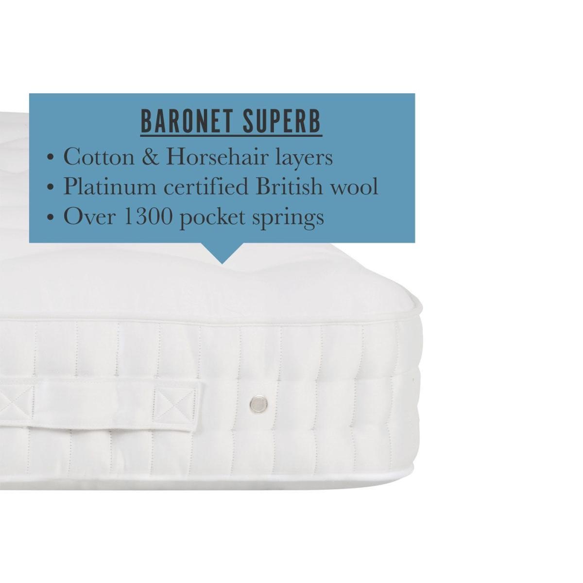 The Baronet Superb brings all the classic ingredients together in a single creation. Its refined natural fillings absorb humidity to furnish a delightfully fresh feel, while contributing excellent durability and resilience along with distinctive support. An assurance of comfort for a soothing night's sleep.