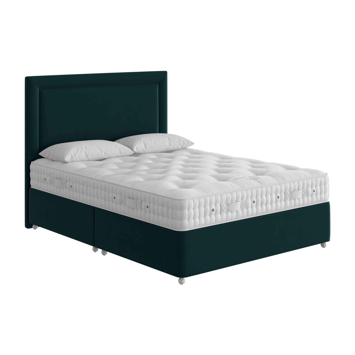 Invest in a refreshing and incredibly comfortable night’s sleep for many years to come. The Vispring Baronet Superb mattress and divan set epitomises handcrafted British luxury, boasting over a thousand of Vispring’s famous 6 turn vanadium steel springs in king size. The all natural fillings, including British fleece wool, cotton and horsehair, have been selected for their ability to regulate temperature and wick away moisture. The sprung, solid timber sprung divan base is upholstered in a wide choice of Vispring’s finest fabrics, with the option of drawer storage. Handcrafted here in the UK. Headboard shown available separately. Superbly handcrafted divan set. Mattress with all-natural, cooling fillings and an elegant divan base in a choice of sizes, fine fabrics and colours. Made in the UK by Vispring. Why you’ll love it Resilient support, indulgent comfort and superb craftsmanship. In a choice of four comfort levels. Horsehair, bonded British fleece wool and cotton filings. Fillings wick away moisture, for a refreshing night’s sleep. 6-turn vanadium pocket springs give precise, body responsive support. Superior-quality ticking, hand tufted with felt washers and 2 rows of hand side-stitching. Strong, wool-upholstered borders with air vents and handles. Drawer storage options are available. The divan base is upholstered in a choice of luxury fabrics. What you need to know Headboard shown is available separately. Mattress type: Pocket spring. Mattress depth: 21cm + 6cm doming Mattress firmness:Soft, Medium, Firm, Extra Firm. Split tension available in King and Super King size. Mattress springs: 1326 vanadium steel, 6 turn pocket springs in king size, in calico pockets. Mattress fillings: Horsehair, bonded British fleece wool and cotton. Mattress cover: fine quality ticking. Sizes: Super king, king, double, small double, single. Requires turning: Yes. Turn with the seasons for optimum performance. Base construction: Traditional sprung platform base. Solid timber frame, FSC certified. Base springs: 600 hand nested pocket springs in king size. Base fillings: Coir, British fleece wool and cotton. Mattress care:Air for 4 hours before using to remove any odour. Allow at least 4 hours for springs to settle and for mattress to attain its full size. Indentations caused by settlement of fillings or body weight are normal and are not considered defects. Rotate regularly, turn seasonally.