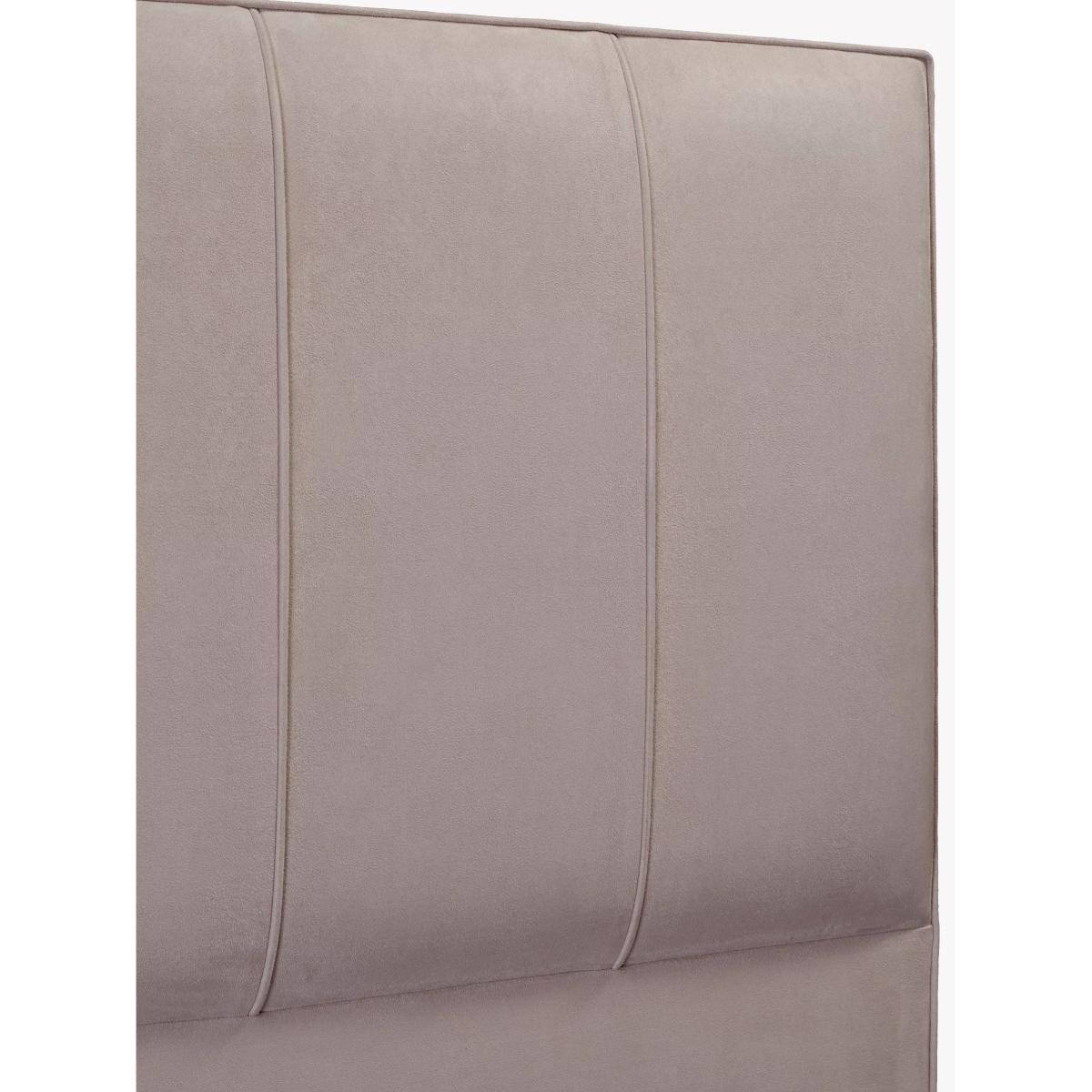 Exhibiting clean modern lines, the Ceres headboard is finished with a tactile faux suede in a versatile and luxurious colourway. Its elegant rectangular design, with deeply upholstered paneling and vertical piped detailing, will effortlessly complete your bedroom scheme. Handmade in Plymouth, England, it features a fire retardant liner, giving you peace of mind. The two wooden struts are simply secured to the back of your divan with four individual bolts, so you can easily transform your space without any hassle. This headboard makes the perfect accompaniment to Vispring's De Luxe 600 or Prestige 950 divan set, available to purchase separately.