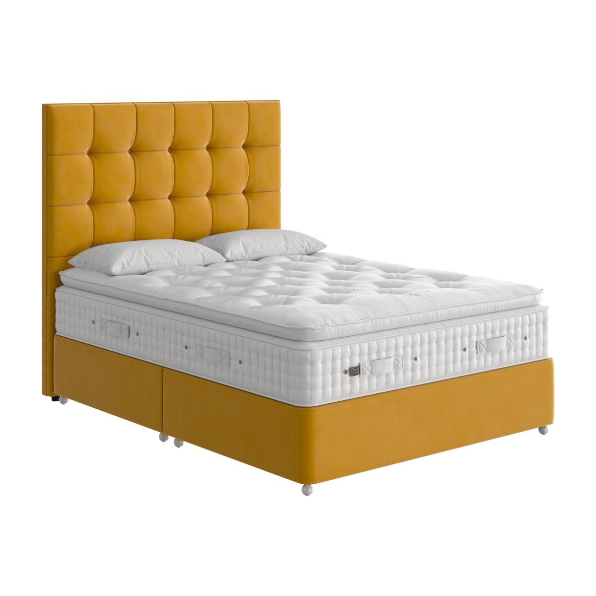 The perfect bed? If you’re looking for comfort and style, this could be the one. Along with a sumptuous pillow top mattress, the set includes a beautifully upholstered divan base with plenty of storage drawer options. Why you’ll love it. Gorgeous divan set features one of Vispring’s very first pillow top mattresses. Sumptuous comfort crafted to exceptionally high standards. Outstanding support thanks to a double layer of pocket springs – 2244 in king size. Pillow top has 2 micro spring layers and resilient fillings for softness that helps to reduce sagging. Natural wool and cotton fillings are hypoallergenic. In a choice of spring tensions for personalised comfort. Wide choice of fine fabrics for the divan base. Five different optional storage drawer configurations. The range also includes a standalone mattress. Handmade to order in Britain by Vispring. Exclusively available at Furniture Village. What you need to know. Headboard shown is available seperately. Mattress type: Pocket spring. Depth: 33 cm including a 10 cm pillow top. Firmness: Soft, medium, firm; split tension available in king and super king sizes. Springs: 2244 hand-nested, six-coil steel pocket springs in king size. Pillow top: Yes, with micro springs, real Shetland wool, Airstream Memory Wool and Cocolok. Fillings: British wool, British cotton. Borders: Wool-upholstered, 3 rows of hand side-stitching, horizontal handles, air vents. Edge support: Hand side stitched to create edges that support just the same as in the middle of the bed. Cover: 100% viscose damask ticking. Requires turning: No. Base type: Traditional sprung platform base; 600 pocket springs in king size. Sizes: Double, king, super king, super king zip and link. Mattress care: Air for 4 hours before using to remove any odour. Allow at least 4 hours for springs to settle and for mattress to attain its full size. Indentations caused by settlement of fillings or body weight are normal and are not considered defects. If used on a slatted bed frame, slats must be no more than 7 cm apart. Rotate regularly.