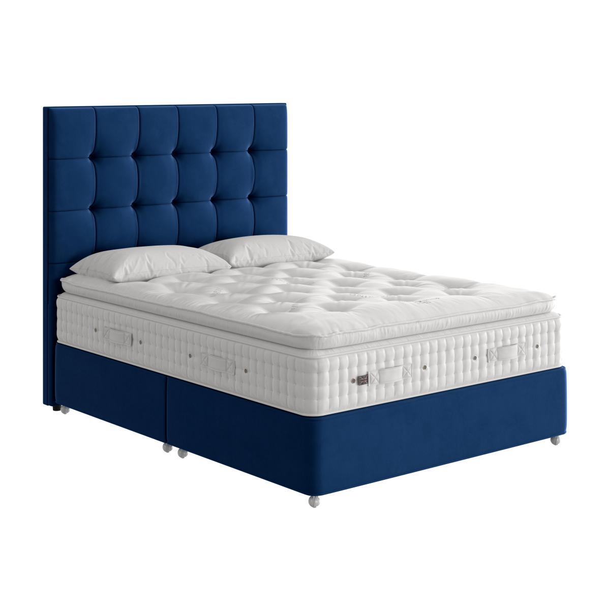 The perfect bed? If you’re looking for comfort and style, this could be the one. Along with a sumptuous pillow top mattress, the set includes a beautifully upholstered divan base with plenty of storage drawer options. Why you’ll love it. Gorgeous divan set features one of Vispring’s very first pillow top mattresses. Sumptuous comfort crafted to exceptionally high standards. Outstanding support thanks to a double layer of pocket springs – 2244 in king size. Pillow top has 2 micro spring layers and resilient fillings for softness that helps to reduce sagging. Natural wool and cotton fillings are hypoallergenic. In a choice of spring tensions for personalised comfort. Wide choice of fine fabrics for the divan base. Five different optional storage drawer configurations. The range also includes a standalone mattress. Handmade to order in Britain by Vispring. Exclusively available at Furniture Village. What you need to know. Headboard shown is available seperately. Mattress type: Pocket spring. Depth: 33 cm including a 10 cm pillow top. Firmness: Soft, medium, firm; split tension available in king and super king sizes. Springs: 2244 hand-nested, six-coil steel pocket springs in king size. Pillow top: Yes, with micro springs, real Shetland wool, Airstream Memory Wool and Cocolok. Fillings: British wool, British cotton. Borders: Wool-upholstered, 3 rows of hand side-stitching, horizontal handles, air vents. Edge support: Hand side stitched to create edges that support just the same as in the middle of the bed. Cover: 100% viscose damask ticking. Requires turning: No. Base type: Traditional sprung platform base; 600 pocket springs in king size. Sizes: Double, king, super king, super king zip and link. Mattress care: Air for 4 hours before using to remove any odour. Allow at least 4 hours for springs to settle and for mattress to attain its full size. Indentations caused by settlement of fillings or body weight are normal and are not considered defects. If used on a slatted bed frame, slats must be no more than 7 cm apart. Rotate regularly.