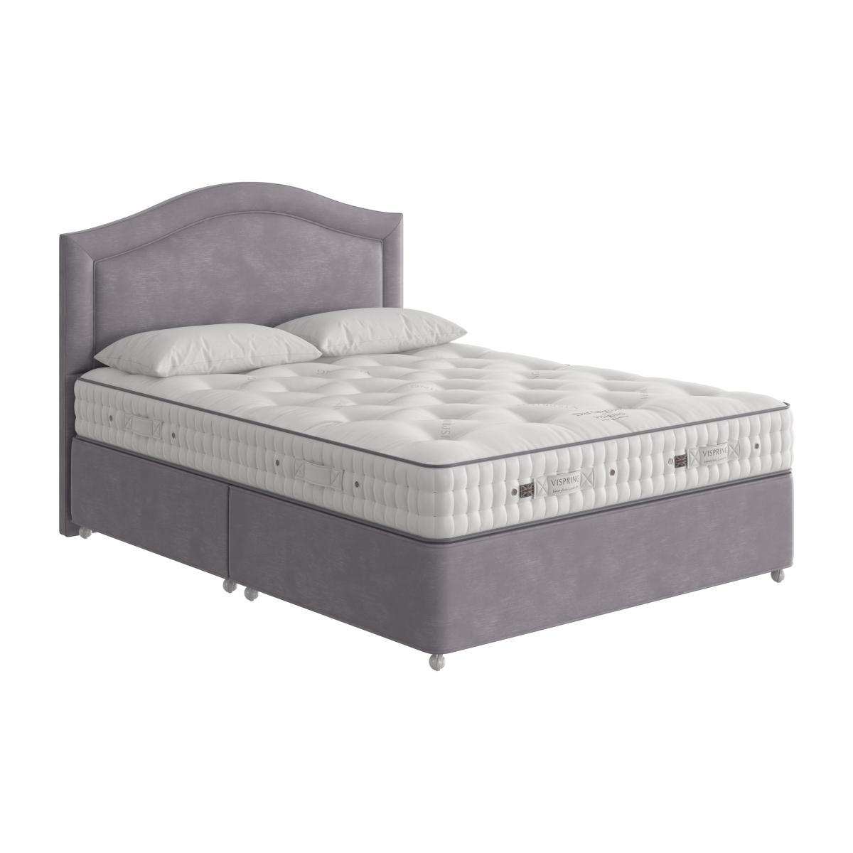 Beautifully handcrafted by Vispring, the Dartington divan bed is luxuriously comfortable. The mattress is generously filled with soft, all-natural materials including Platinum Certified British fleece wool and cotton. Within are two layers of Vispring’s famous 6 turn vanadium steel springs offering responsive support. The mattress rests on a solid timber sprung base, upholstered in a wide choice of fine upholstery. Headboard is an optional extra. Offering a cosy traditional feel, the Vispring Dartington divan set promises soothing, body-conforming comfort. This handcrafted bed comprises a 21 cm mattress with, in king size, 1558 vanadium steel pocket springs, each with six coils, that are hand-nested in calico and layered with springy and resilient fillings – bonded British fleece wool and cotton, British fleece wool, and blended British fleece wool and cotton. Covered in a fine soft ticking and hand tufted with felt washers, this mattress has wool-upholstered borders with two rows of hand side stitching, horizontal handles and air vents. It rests on a solid timber divan base with 950 pocket springs in king size and is filled with coir and blended British fleece wool and cotton. This divan base is offered with optional storage drawers. Shown here in d. Iamond oyster 2059. The Vispring Dartington divan set is part of the British-made Vispring Dartington collection. Product images are representative. Find out more. Please note. The mattress should be aired for four hours after delivery to freshen and remove any aroma from storage. It may take time for your mattress to attain its full size once the springs have settled to the correct position. This is due to the mattress being upright during transit. Settlement of fillings and indentations caused by body weight compressing the fillings are natural and not considered defects. This can be minimised by regular rotating (unless yours is a dual tension mattress).