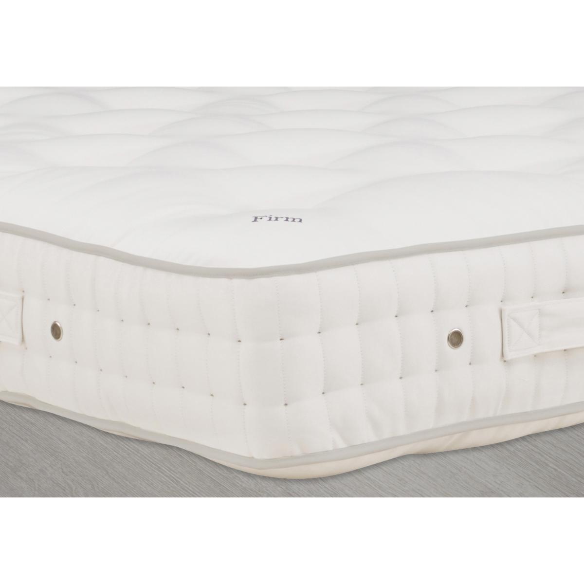 Beautifully handcrafted by Vispring, the Dartington divan bed is luxuriously comfortable. The mattress is generously filled with soft, all-natural materials including Platinum Certified British fleece wool and cotton. Within are two layers of Vispring’s famous 6 turn vanadium steel springs offering responsive support. The mattress rests on a solid timber sprung base, upholstered in a wide choice of fine upholstery. There’s something rather special about the Vispring Dartington mattress. It’s designed to mould perfectly to the shape and weight of your body, and yet even with repeated use it springs back to its original form. Offering a cosy traditional feel, this 21 cm handcrafted mattress has 1558 vanadium steel pocket springs in king size. Springs have six coils and are hand-nested in calico pockets for superb support. Soft natural fillings include bonded British fleece wool and cotton, British fleece wool, and blended British fleece wool and cotton. The mattress itself is covered in high-quality ticking and is hand tufted with felt washers. Borders are upholstered in protective wool and have two rows of hand side stitching, horizontal handles and air vents. The beautiful Vispring Dartington mattress is part of the British-made Vispring Dartington collection. The range also includes a divan set with mattress and upholstered divan base. Please note. The mattress should be aired for four hours after delivery to freshen and remove any aroma from storage. It may take time for your mattress to attain its full size once the springs have settled to the correct position. This is due to the mattress being upright during transit. Settlement of fillings and indentations caused by body weight compressing the fillings are natural and not considered defects. This can be minimised by regular rotating (unless yours is a dual tension mattress).