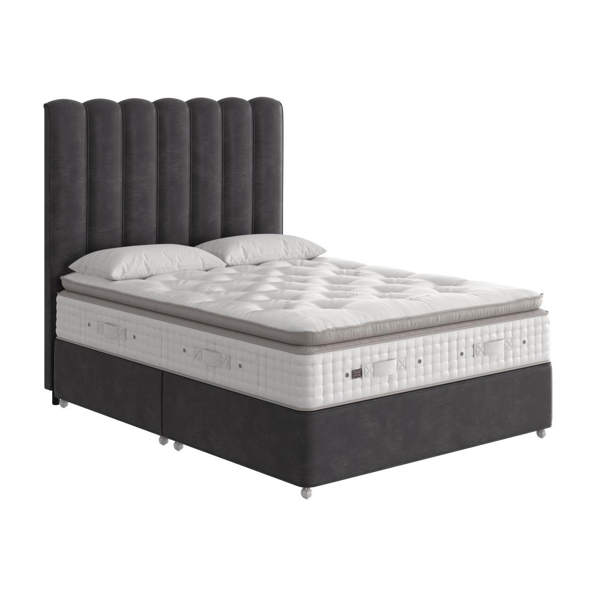 One of Vispring's first ever pillow top divan sets, this bed has to be seen to be believed. Or, better still, just snuggle down on that sumptuous pillow top with two layers of micro springs and surrender to comfort. Why you’ll love it. Exquisite divan set features one of Vispring’s very first pillow top mattresses. Opulent comfort crafted to exceptionally high standards. Outstanding support thanks to a double layer of pocket springs – 2812 in king size. Pillow top has 2 micro spring layers and resilient fillings for softness that helps reduce sagging. Natural wool and cotton fillings are hypoallergenic. In a choice of spring tensions for personalised comfort. Wide choice of fine fabrics for the divan base. Five different optional storage drawer configurations. The range also includes a standalone mattress. Handmade to order in Britain by Vispring. Exclusively available at Furniture Village. What you need to know. Headboard shown is available seperately. Mattress type: Pocket spring. Depth: 38 cm including a 10 cm pillow top. Firmness: Soft, medium, firm; split tension available in king and super king sizes. Springs: 2812 hand-nested, six-coil steel pocket springs in king size. Pillow top: Yes, with micro springs, real Shetland wool, Airstream Memory Wool and Cocolok. Fillings: British wool, British cotton. Borders: Wool-upholstered, 4 rows of hand side-stitching, horizontal handles, air vents. Edge support: Hand side stitched to create edges that support just the same as in the middle of the bed. Cover: 100% viscose damask ticking. Requires turning: No. Base type: Traditional fully pocket sprung platform base; 950 pocket springs in king size. Sizes: Double, king, super king, super king zip and link. Mattress care: Air for 4 hours before using to remove any odour. Allow at least 4 hours for springs to settle and for mattress to attain its full size. Indentations caused by settlement of fillings or body weight are normal and are not considered defects. If used on a slatted bed frame, slats must be no more than 7 cm apart. Rotate regularly.