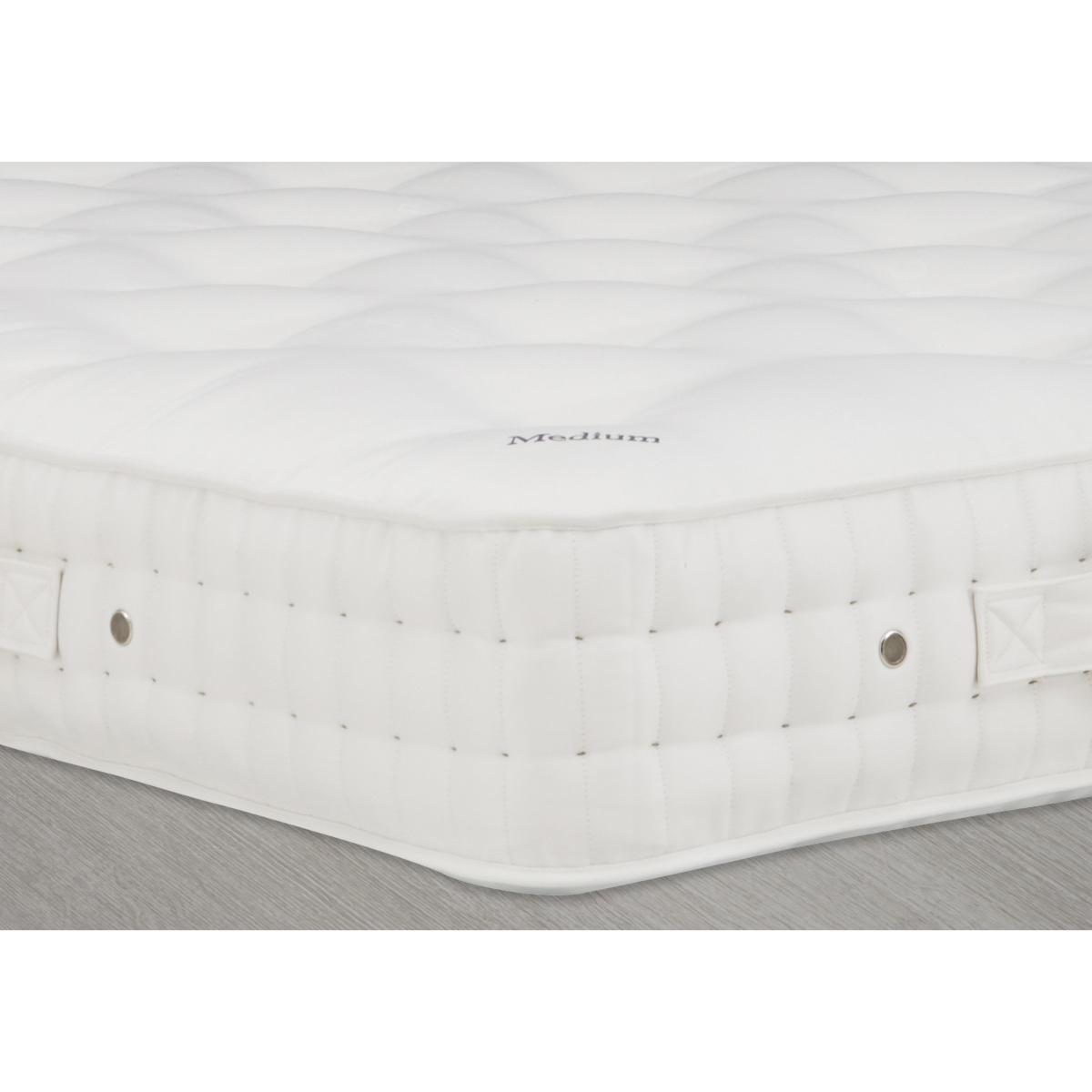 Traditionally handcrafted in Britain, the Vispring Elite mattress puts bespoke mattress comfort within reach. This pocket sprung mattress features Vispring's vanadium steel springs. Each has six coils for optimum support and each is hand nested in a calico pocket. With 1254 springs in King size, this luxurious 21 cm deep mattress is available in a choice of 3 mattress tensions. All natural fillings – bonded Platinum Certified British fleece wool and cotton, and blended Platinum Certified British fleece wool and cotton – are designed to wick moisture away for fresher and cooler sleep. This hand-tufted mattress is covered in high-quality ticking and has wool-upholstered borders, two rows of hand side-stitching, horizontal handles and air vents. The Vispring Elite mattress is one of many beautiful Vispring mattresses and divan sets at Furniture Village and is available with a superb pocket sprung divan base in the Vispring Elite pocket sprung divan set. Didyouknow?. The mattress should be aired for four hours after delivery to freshen and remove any aroma from storage. It may take time for your mattress to attain its full size once the springs have settled to the correct position. This is due to the mattress being upright during transit. Settlement of fillings and indentations caused by body weight compressing the fillings are natural and not considered defects. This can be minimised by regular rotating (unless yours is a dual tension mattress).